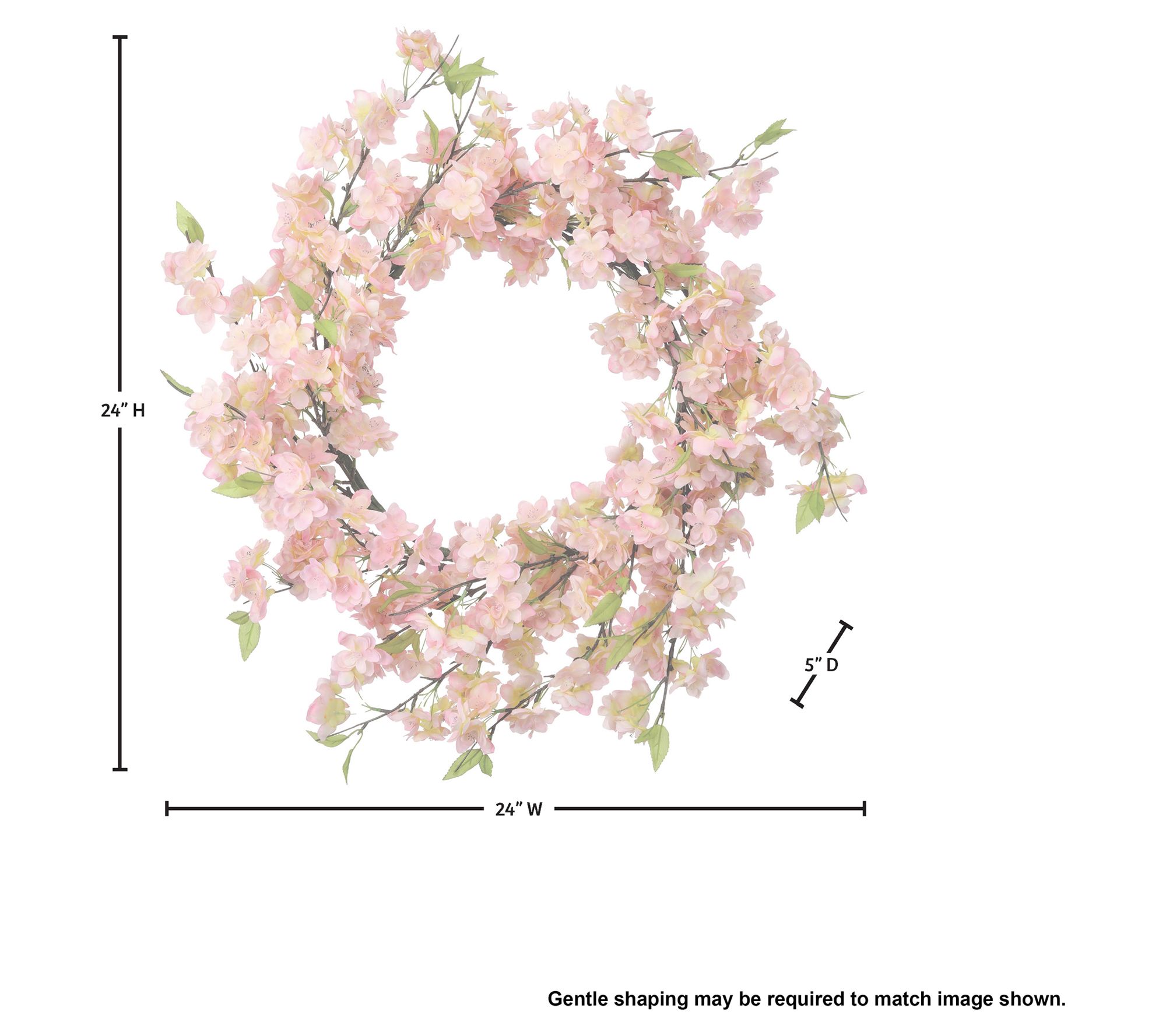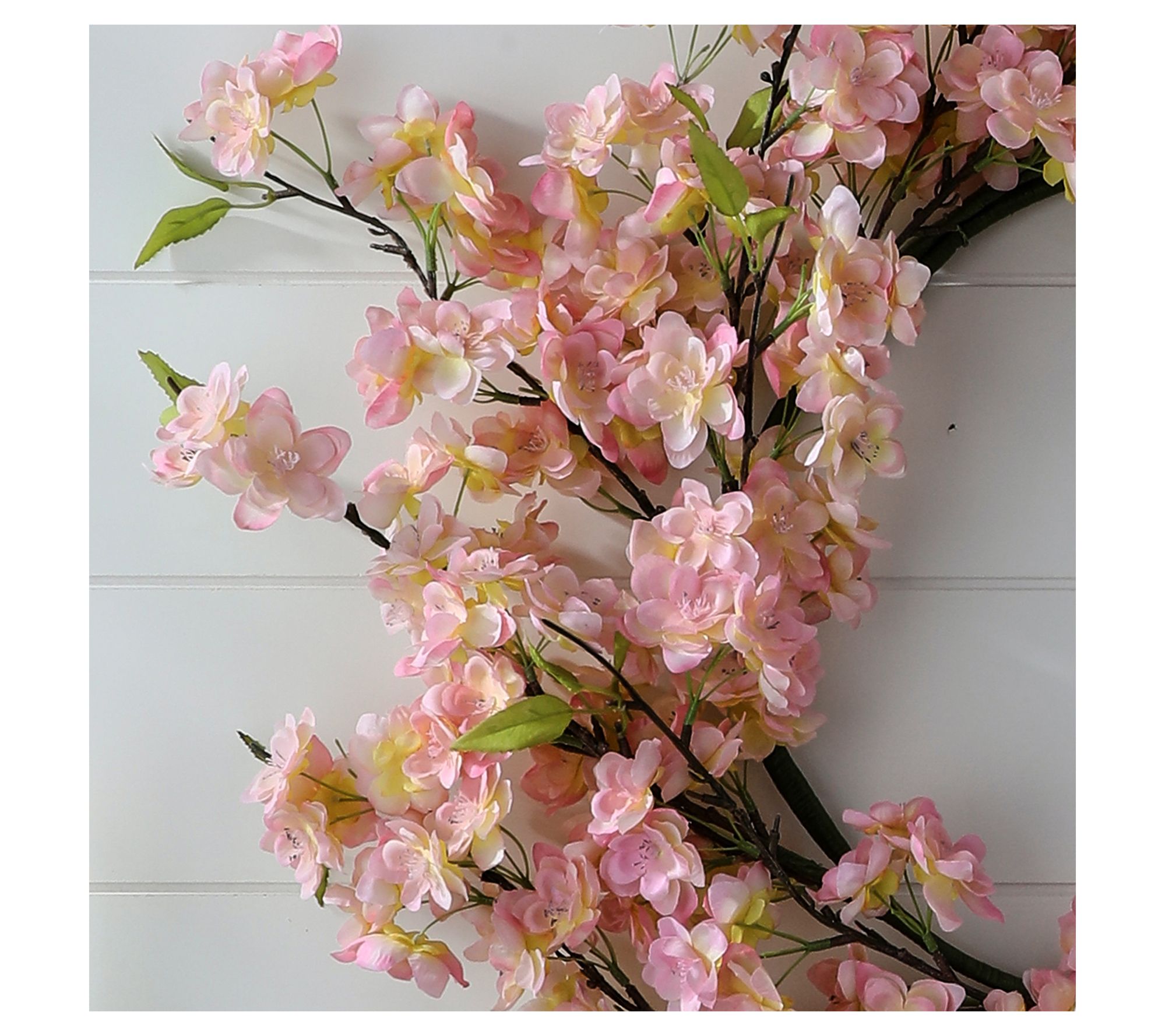 • Faux soft-pink cherry blossoms intertwined with greenery