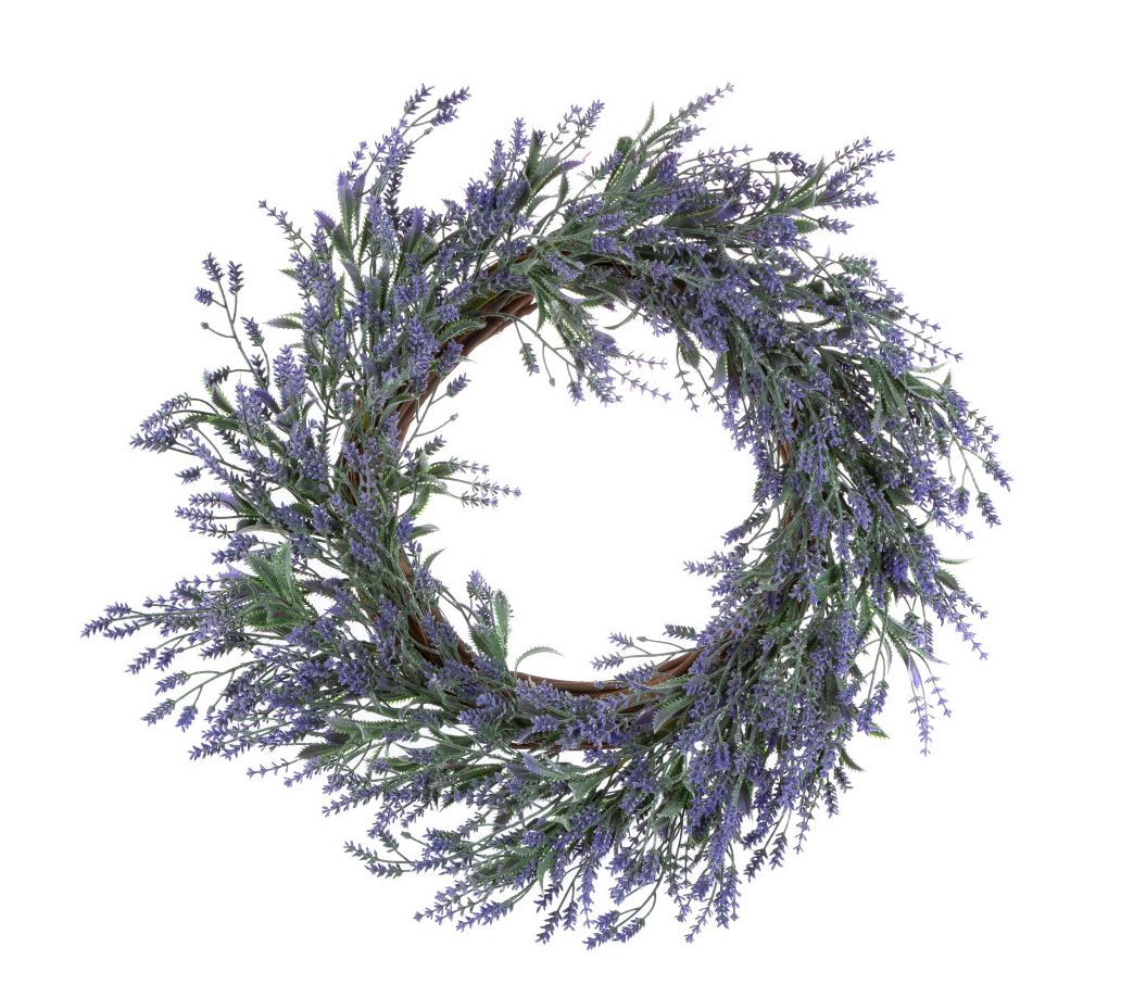 Inspired by the lush fields of Provence, this faux lavender wreath brings a touch of old-world charm to a door, entryway, or fireplace. From Gerson International.
