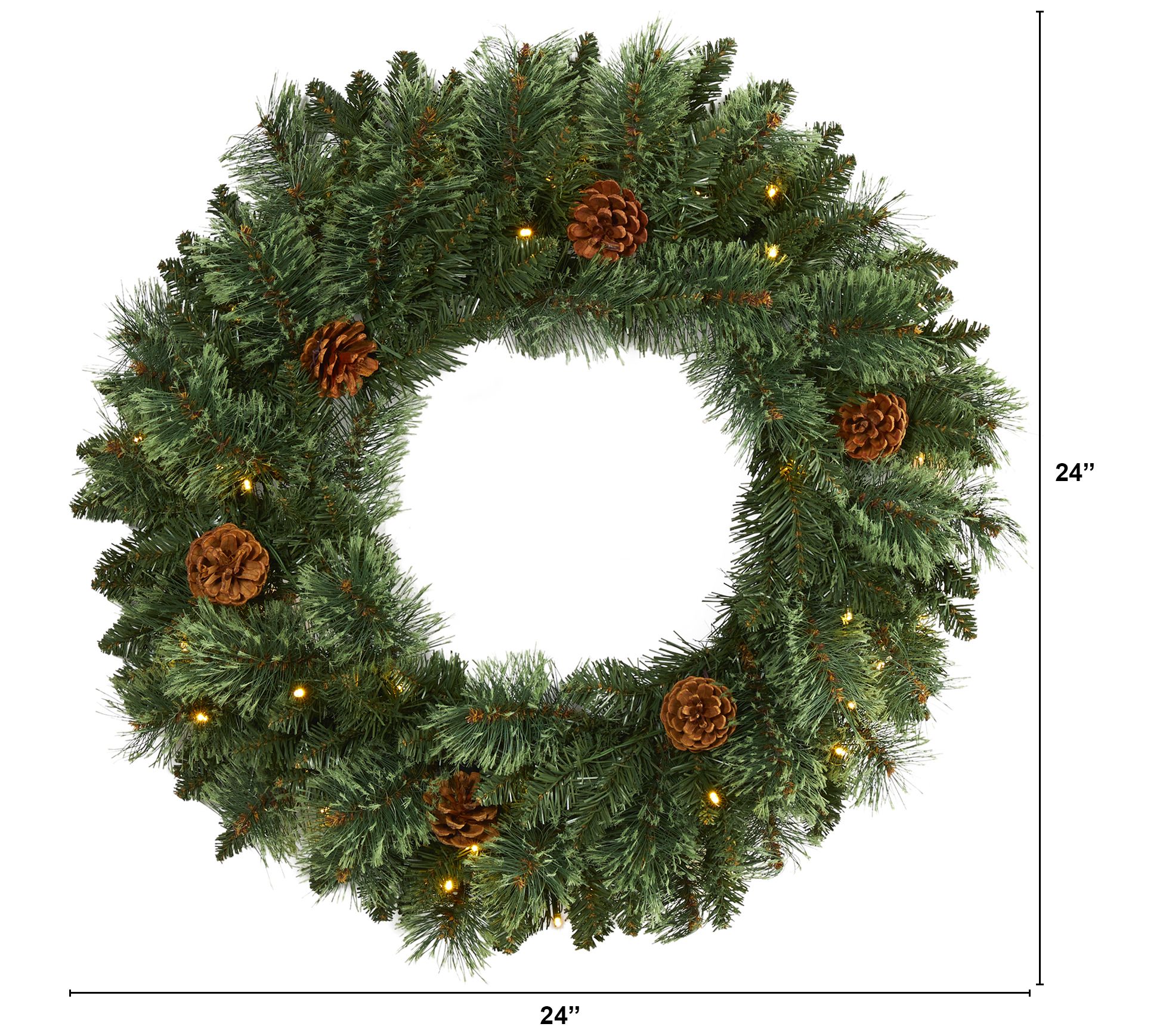 24" Lit White Mountain Pine Wreath by Nearly Natural