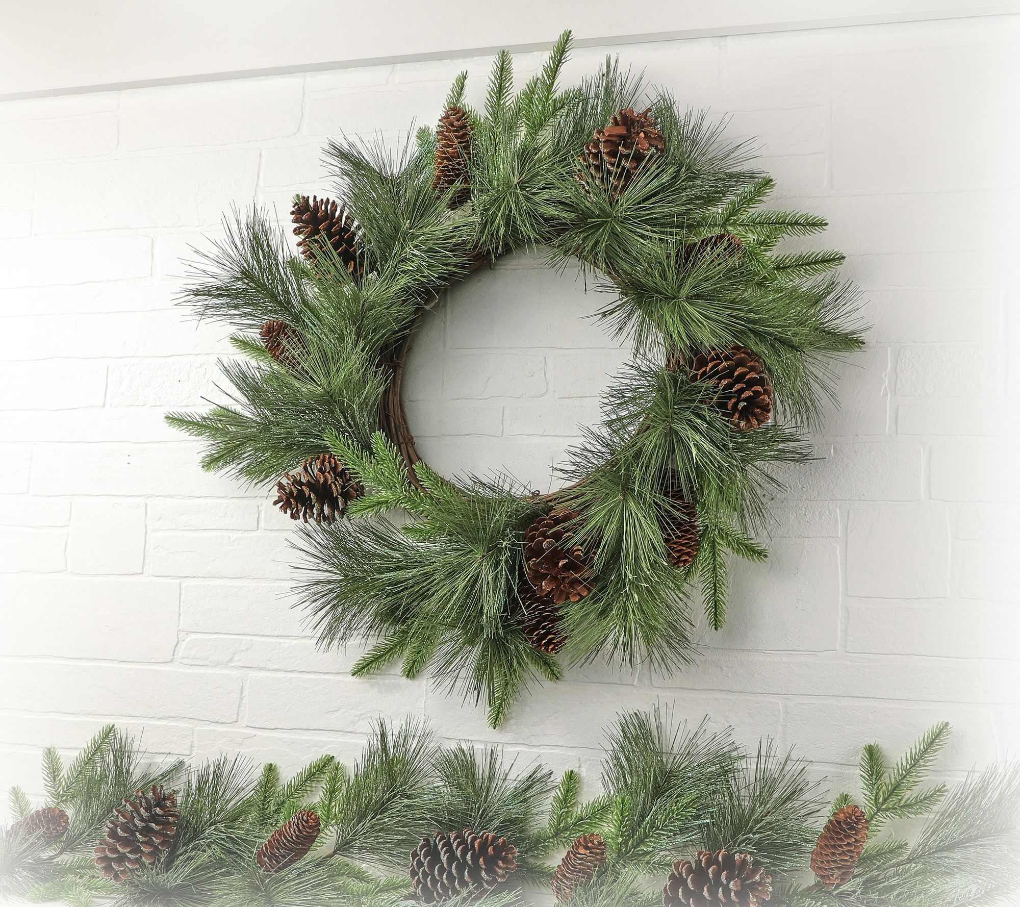 24" Long Pine/Spruce with Cones Wreath by Valer ie