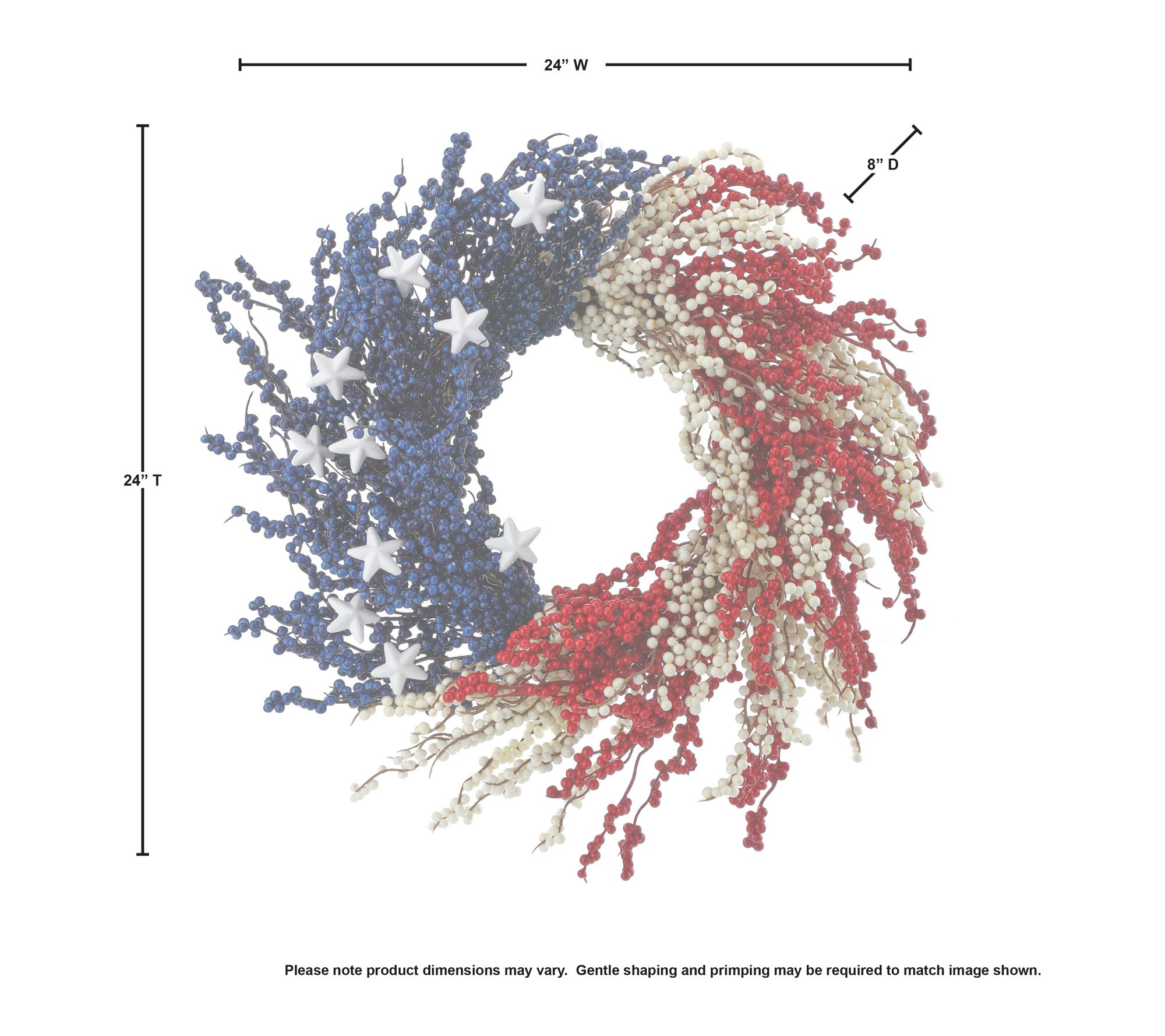 • Includes one 24" patriotic berry wreath with dimensional faux berries and classic star details
