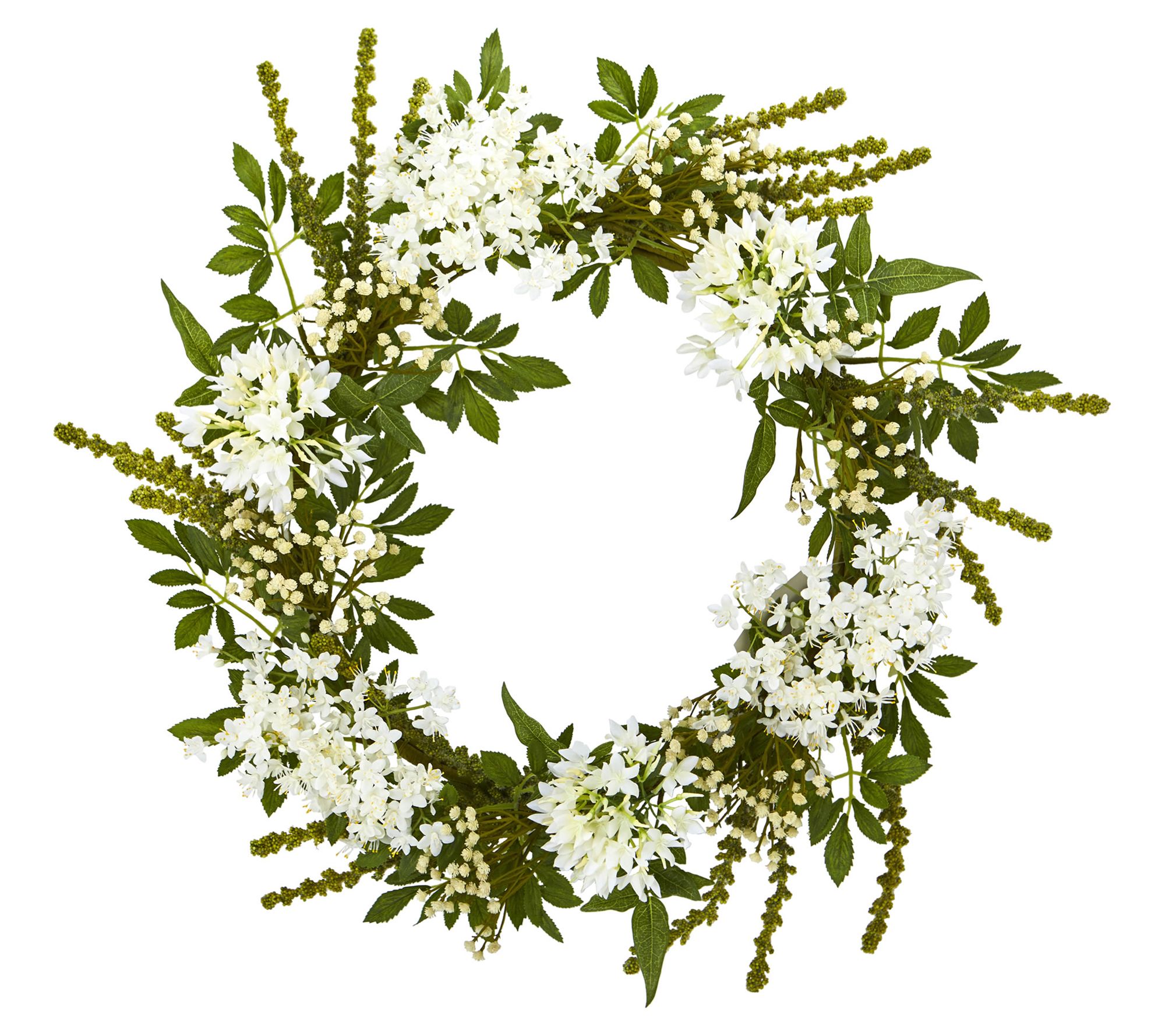 24" White Mixed Floral Artificial Wreath by Nearly Natural