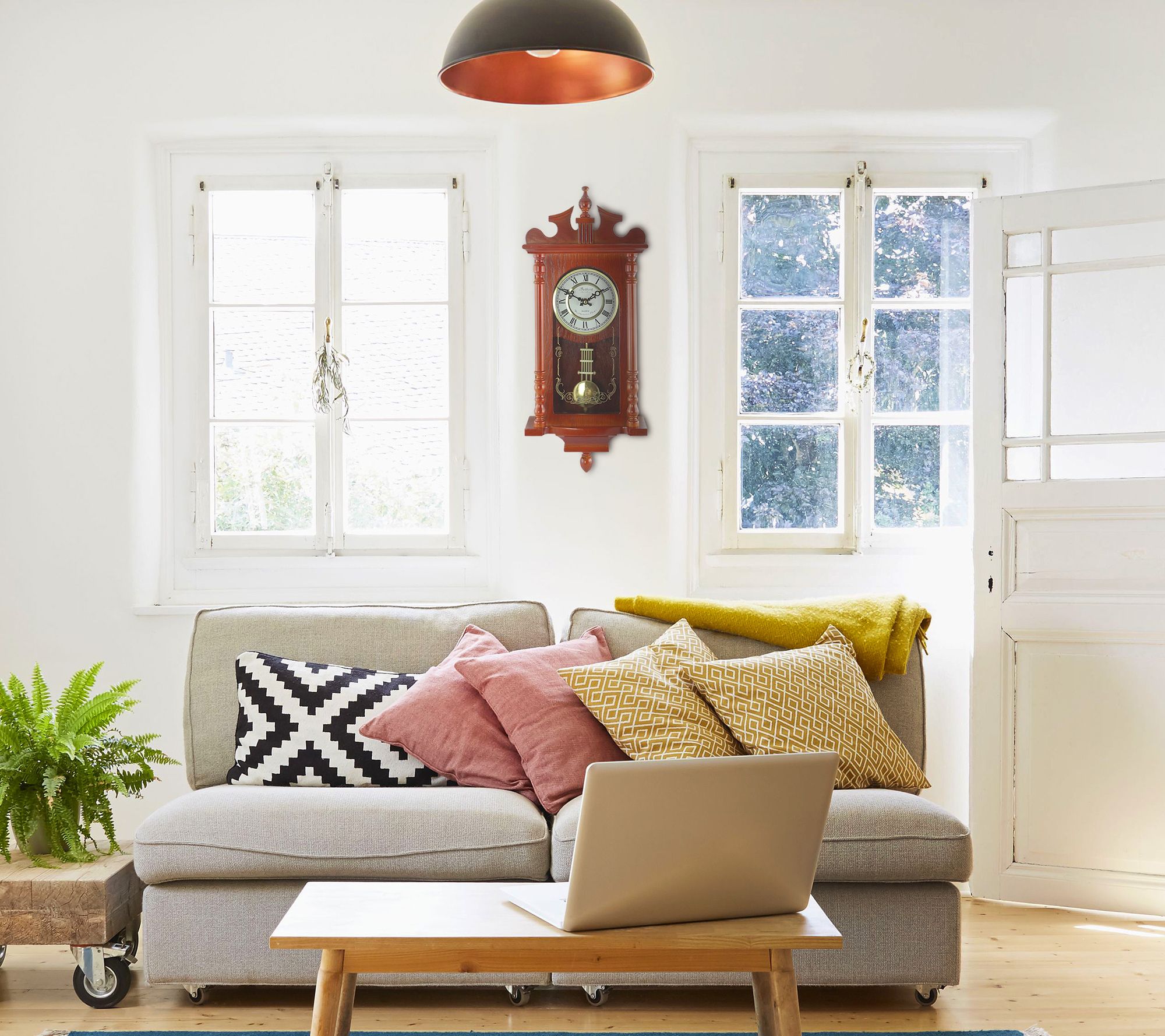 25in Wall Clock with Pendulum and Chime in Redwood Oak Finish