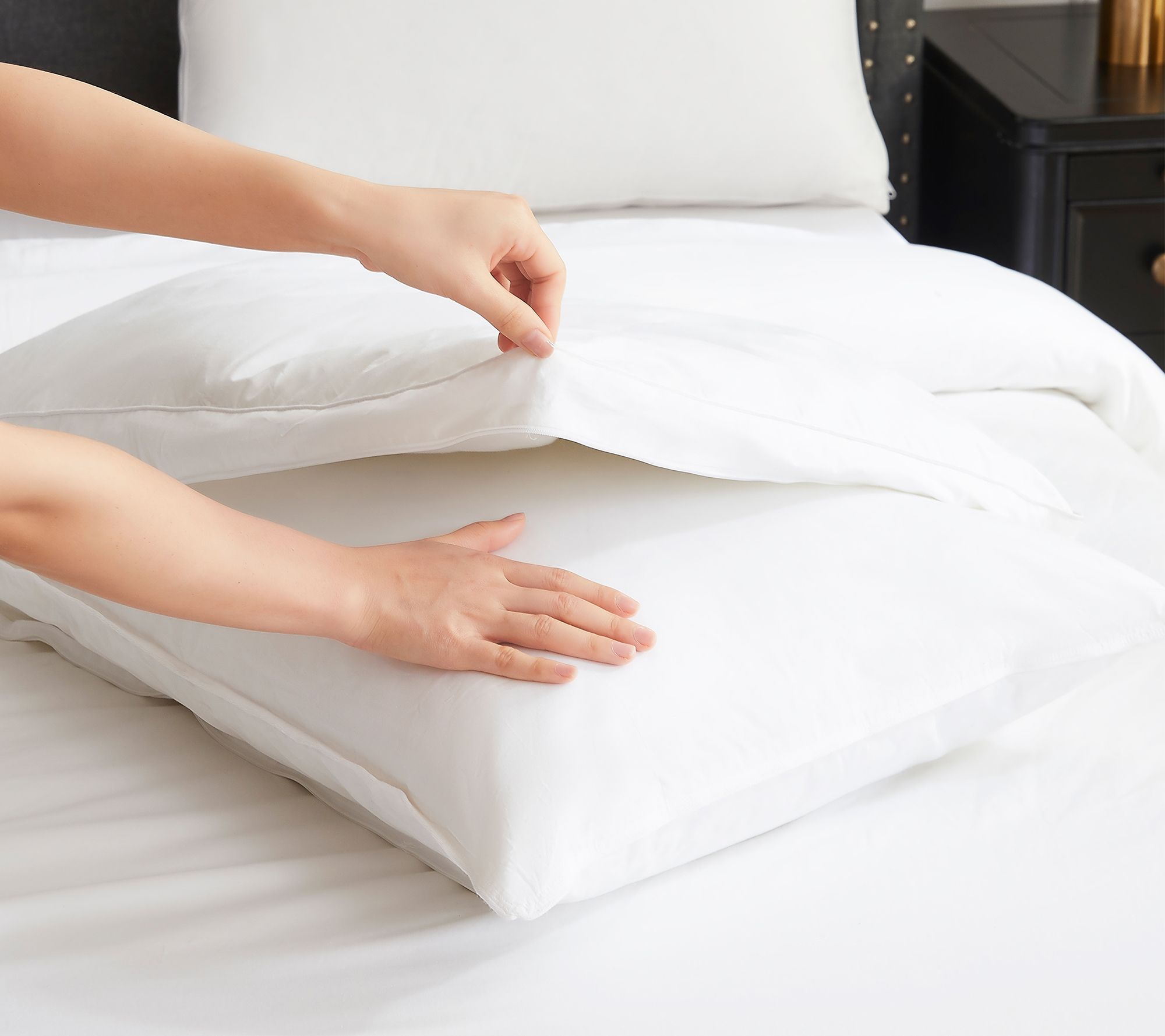 Experience the ultimate in customizable comfort with the 3-in-1 adjustable down alternative king pillow. This innovative pillow adapts to your sleeping preferences, offering firm, medium, or soft support by simply adjusting the inner pillow. From Stearns & Foster.