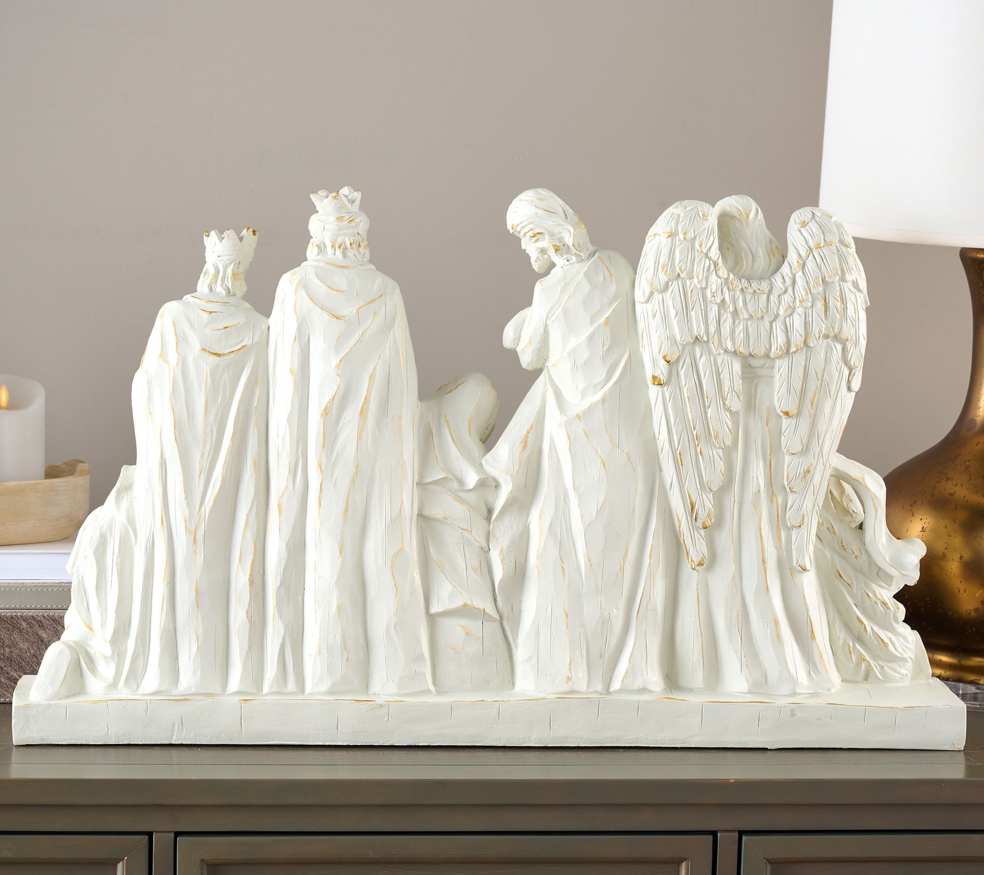 Create a memorable holiday display with this grand Nativity scene, designed to be the centerpiece of your indoor or outdoor decor. Its impressive 32" size beautifully highlights the timeless story of the season while adding an inviting glow to entryways, living rooms, or covered porches. From Kim Gravel.