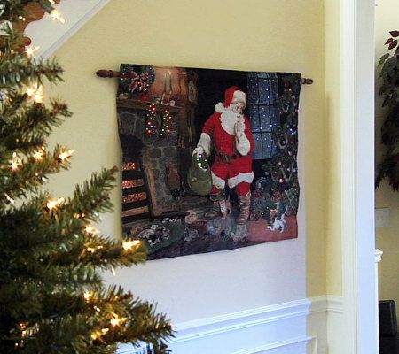 Deck the walls. This fun and festive wall tapestry features fiber-optic lighting that's strategically placed throughout the scene. A timer can be set to illuminate the piece for six hours at a time.