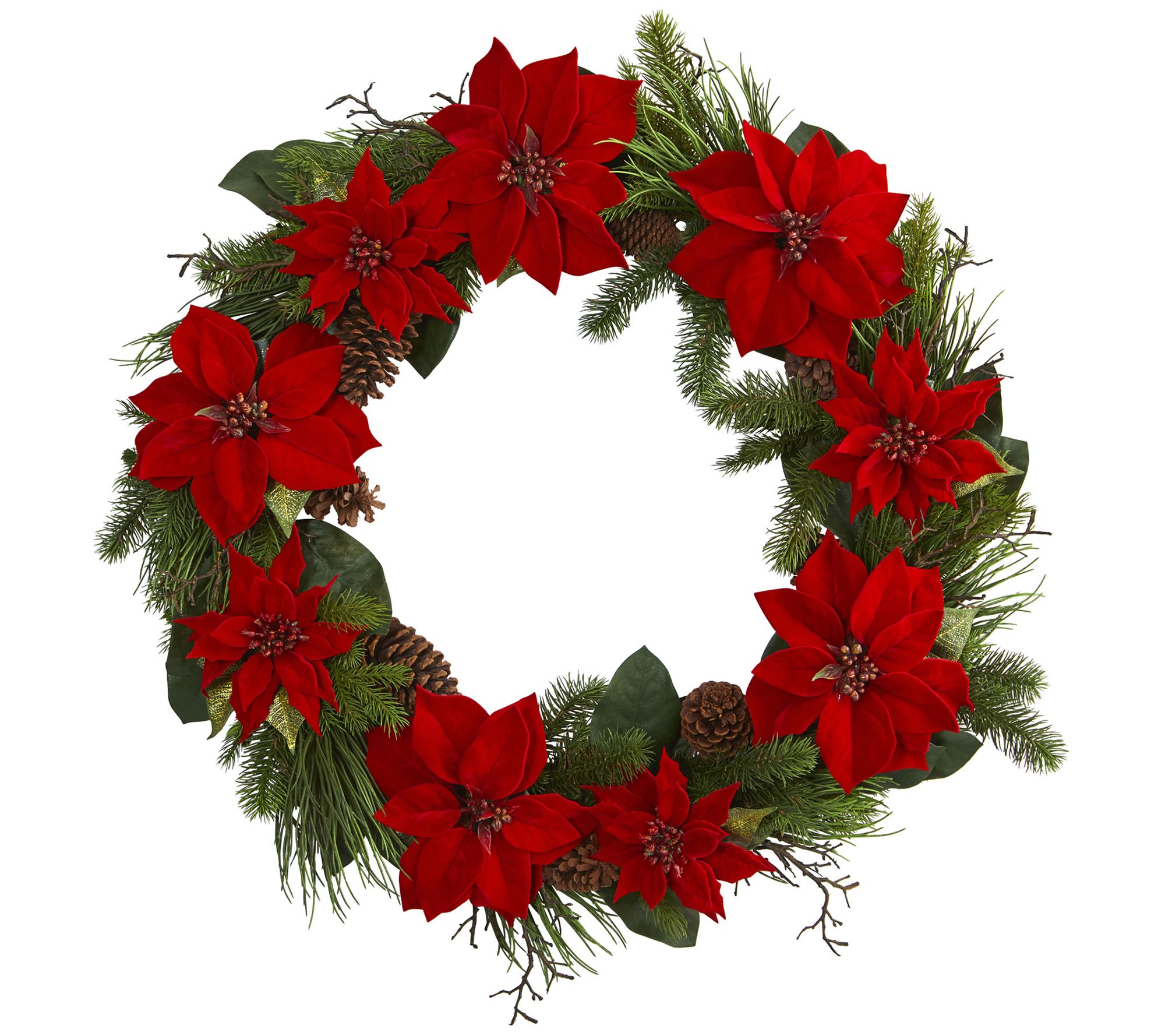 36" Poinsettia and Pine Wreath by Nearly Natural