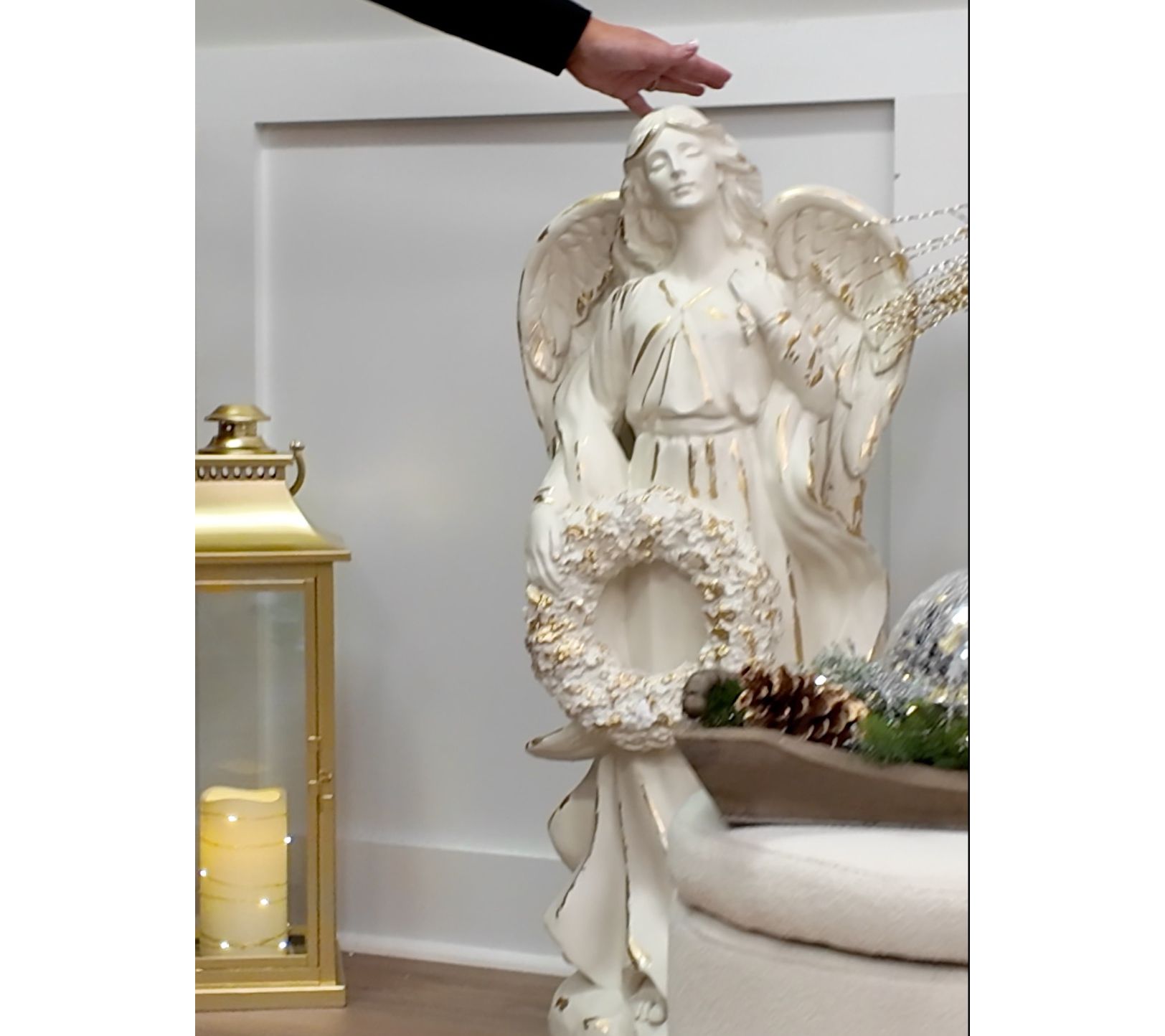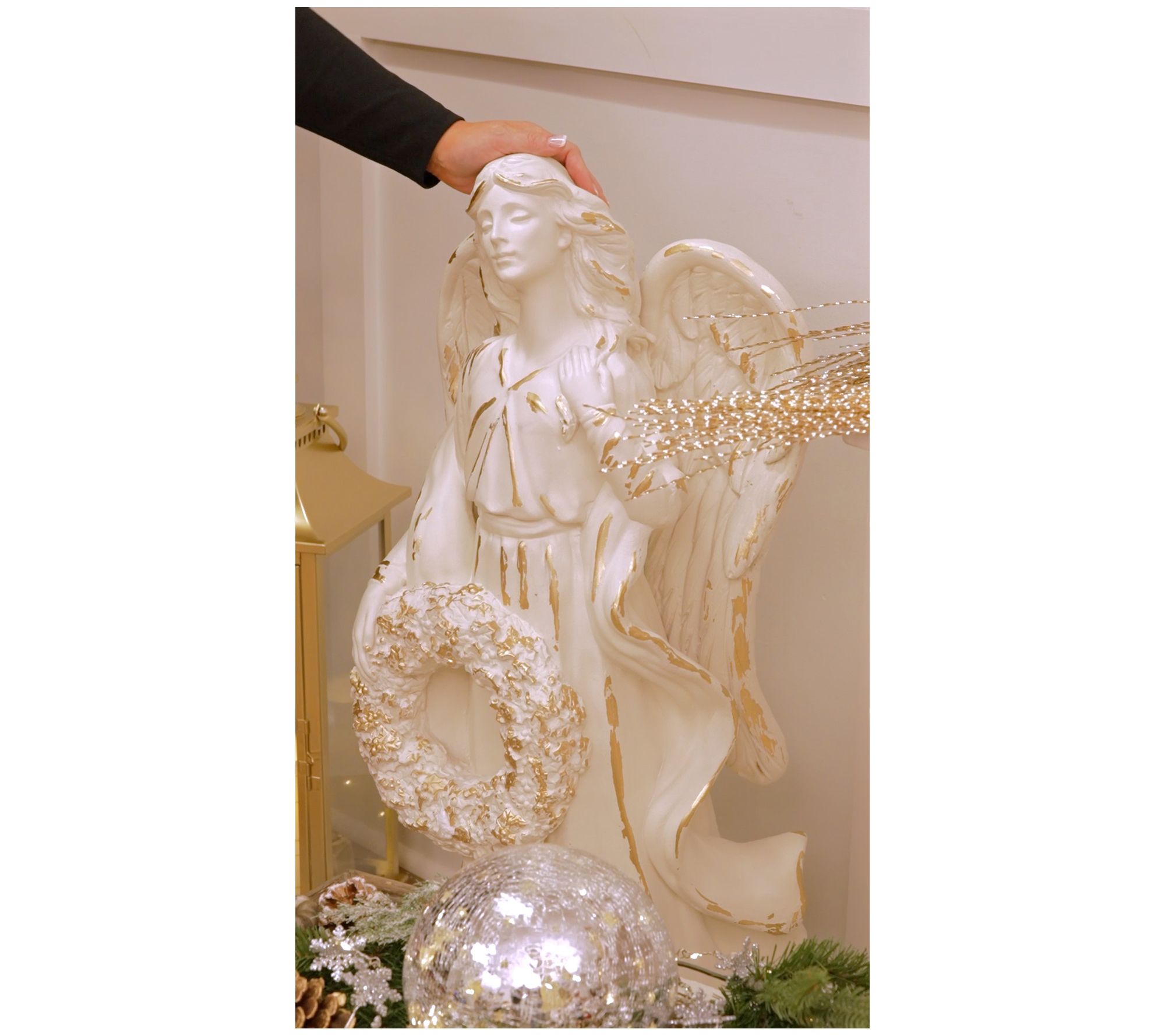 Welcoming guests with a gentle presence, this golden angel brings warmth and serenity to cozy living rooms and festive outdoor displays. The shimmering gold-brushed finish catches the light beautifully, making every gathering feel a little brighter and more magical. Place her by your entryway or at the heart of your decor to inspire peaceful holiday moments. From Kim Gravel.