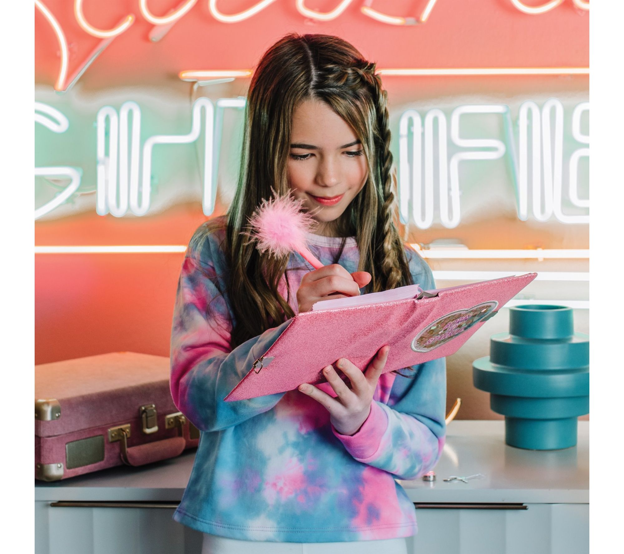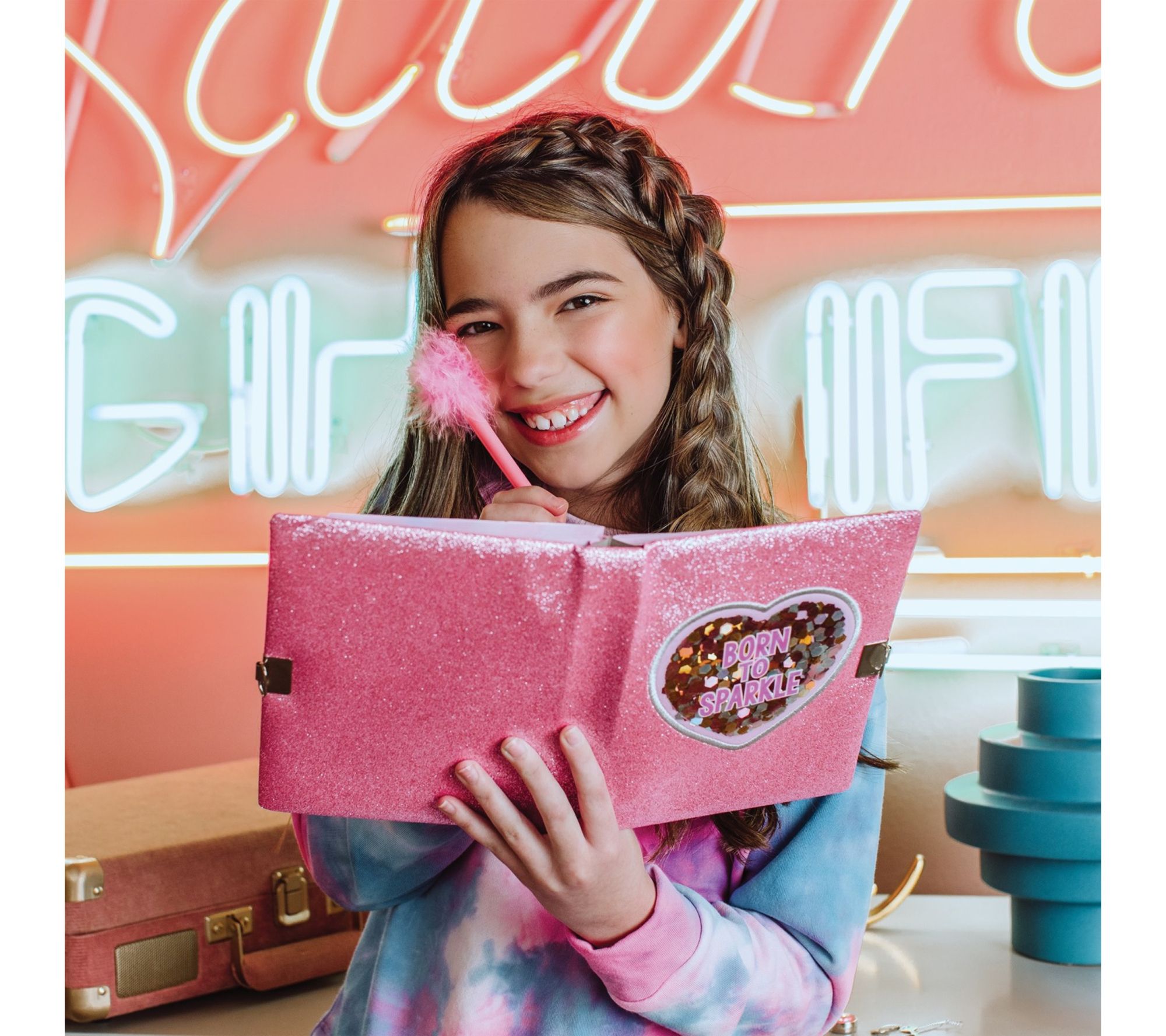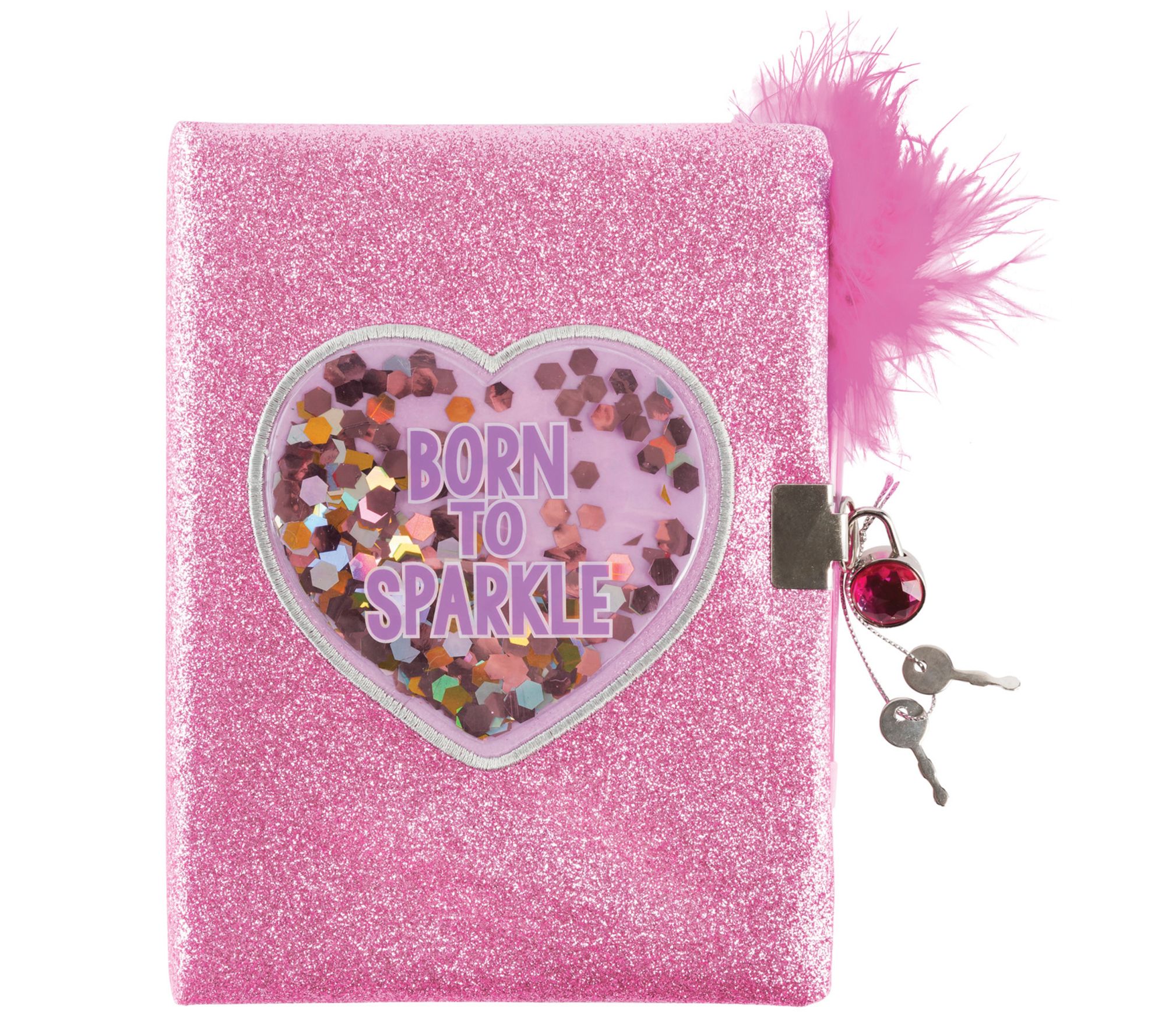 Give your child a sparkling place to dream, doodle, and write with this glitter locking journal, featuring a gem lock with two keys for privacy. Colorful lined pages invite kids to fill each day with creative thoughts, stories, or drawings, while the trendy cover design adds style they'll love to show off. Ideal for birthday surprises or holiday gifts, this hardcover journal inspires imagination and expression. From 3C4G.