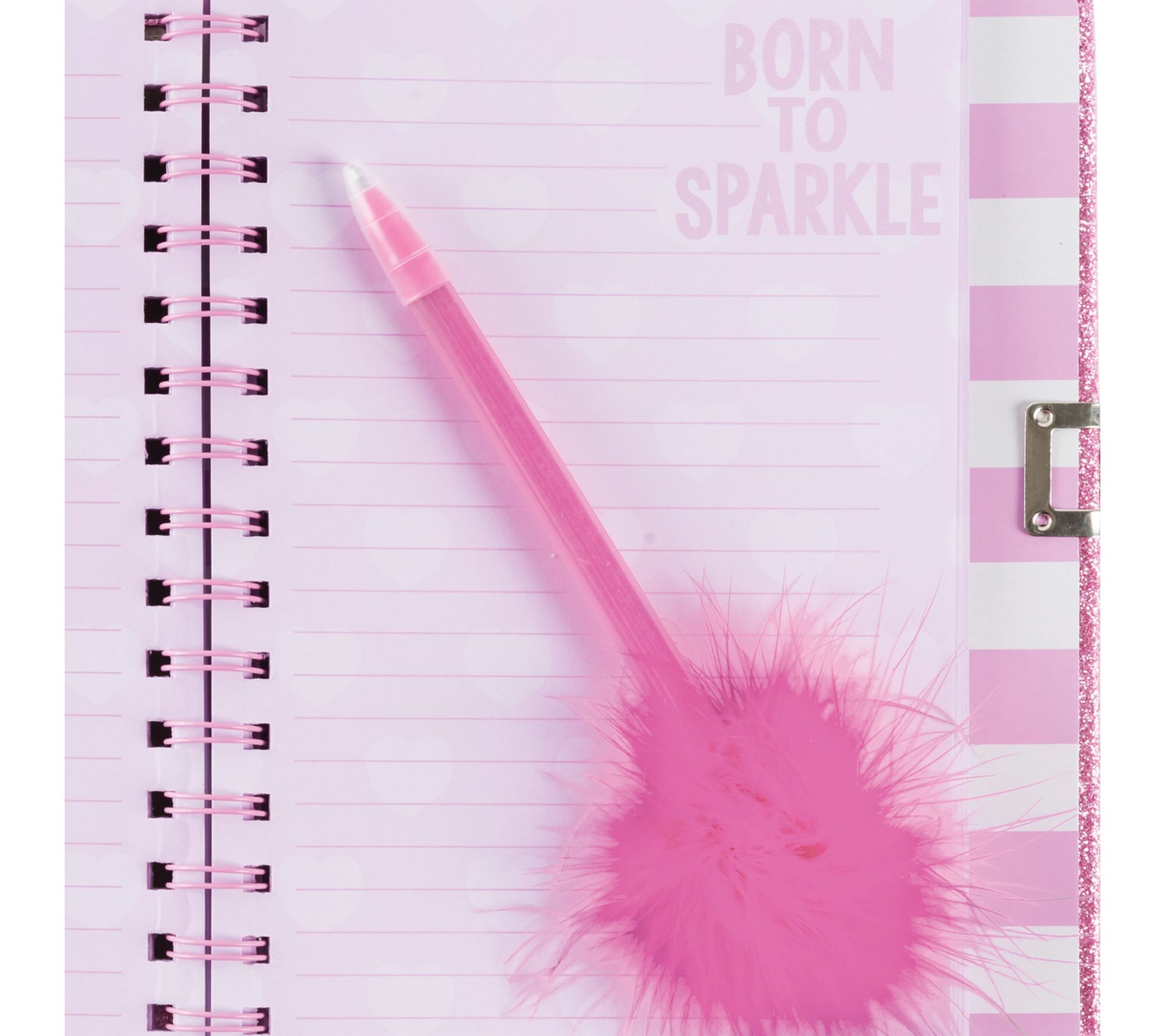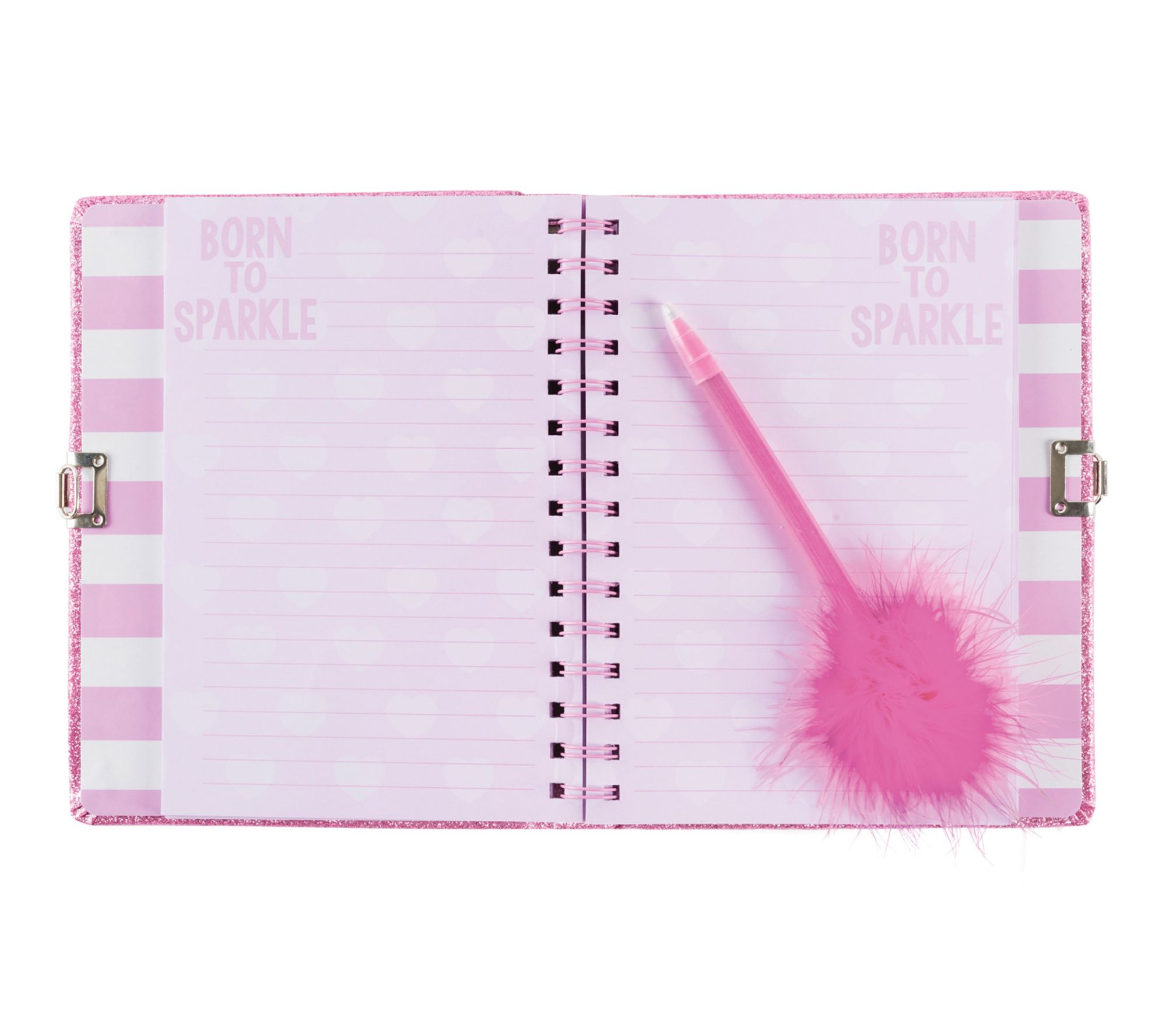• Includes journal, gem lock, two keys, and fluffy feather pen
