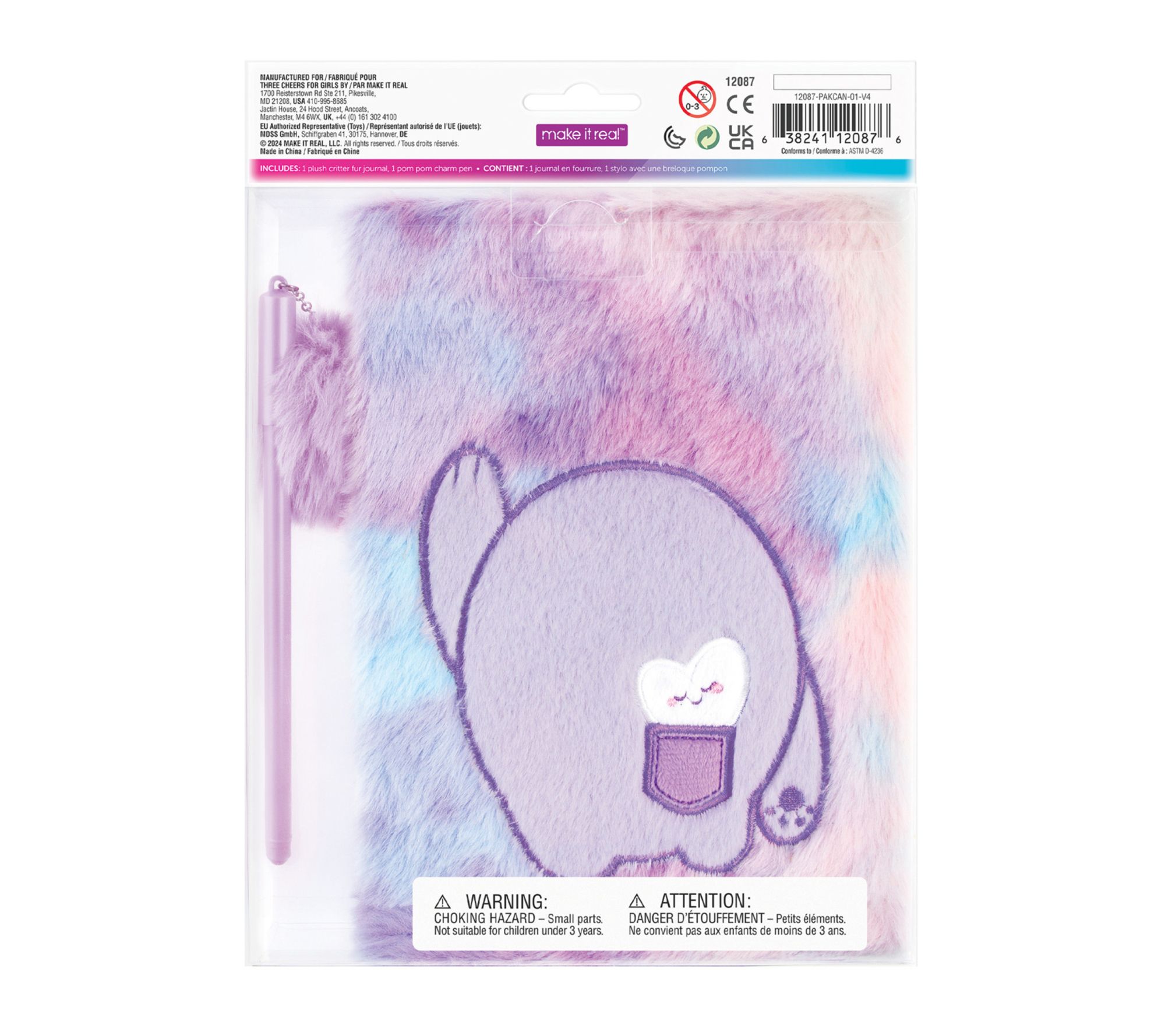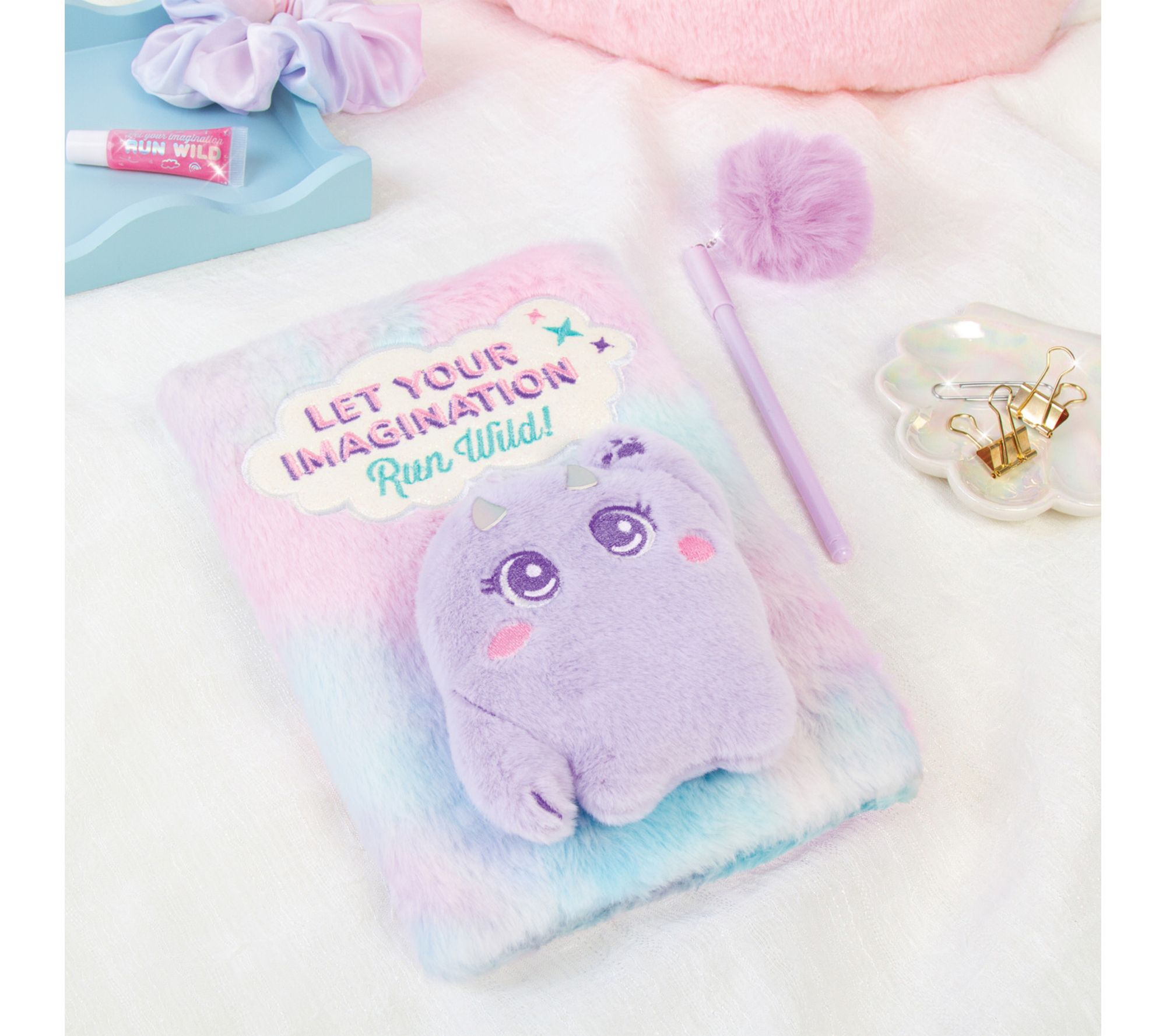 • Includes plush critter fur locking journal and pom charm pen