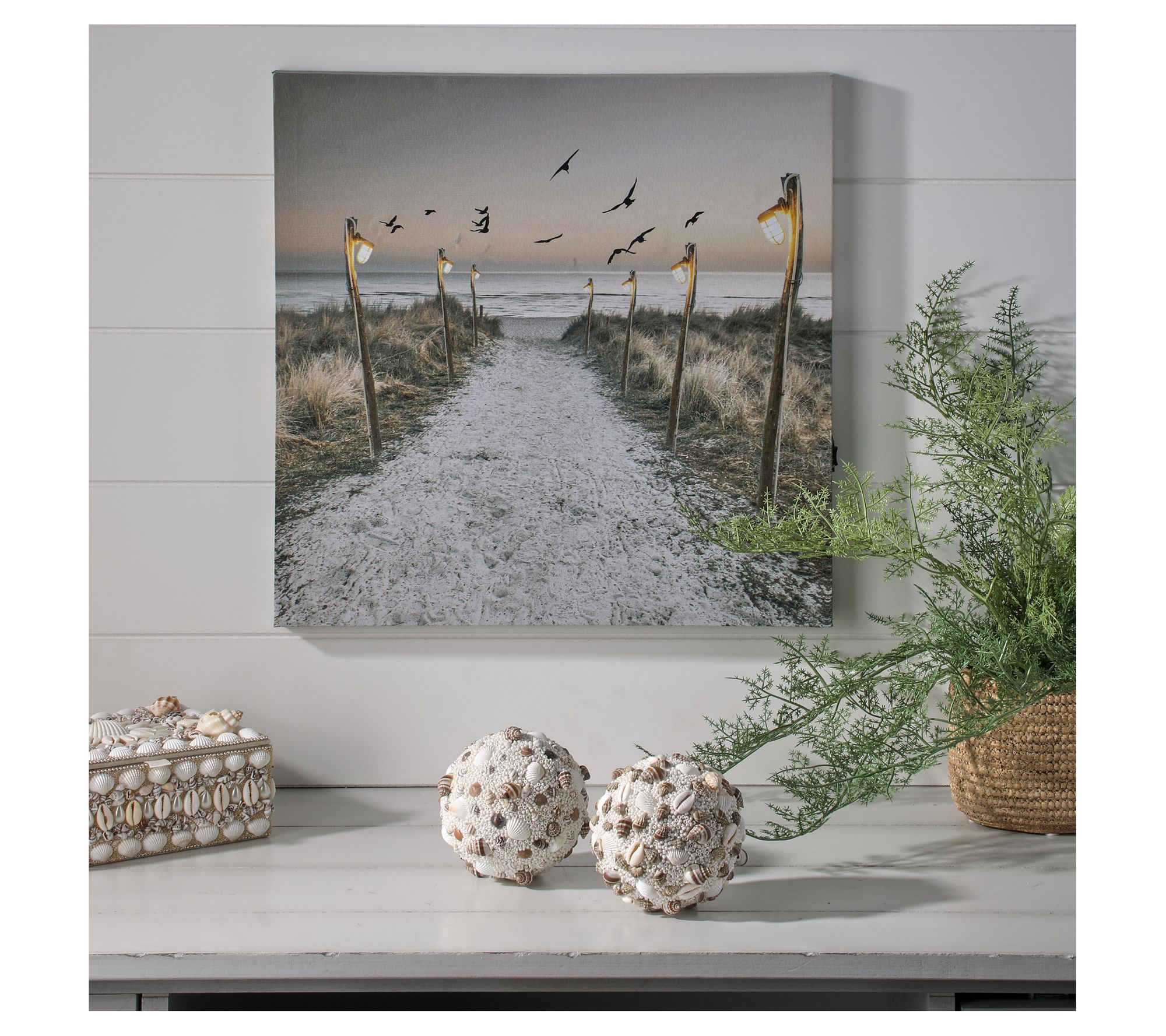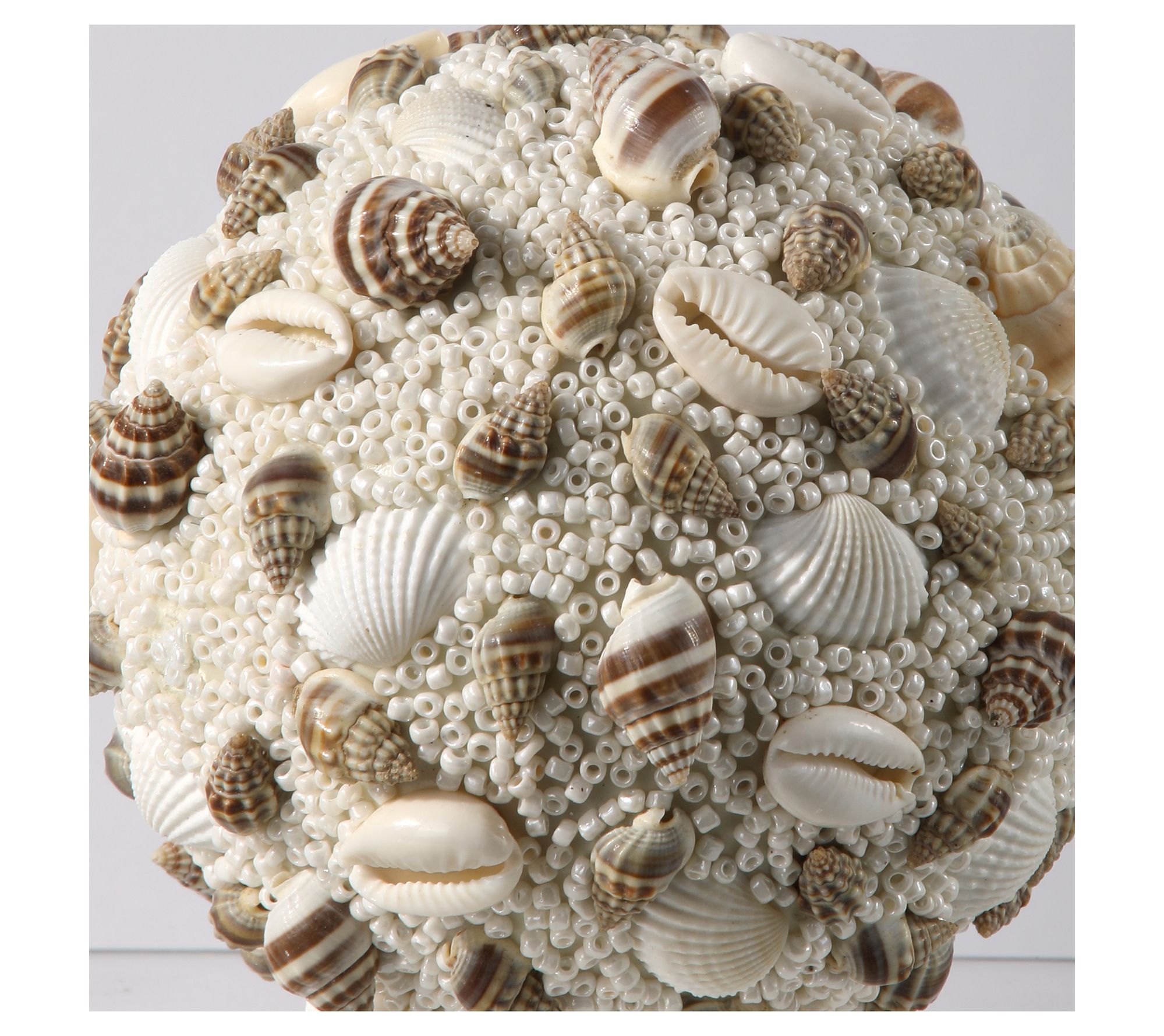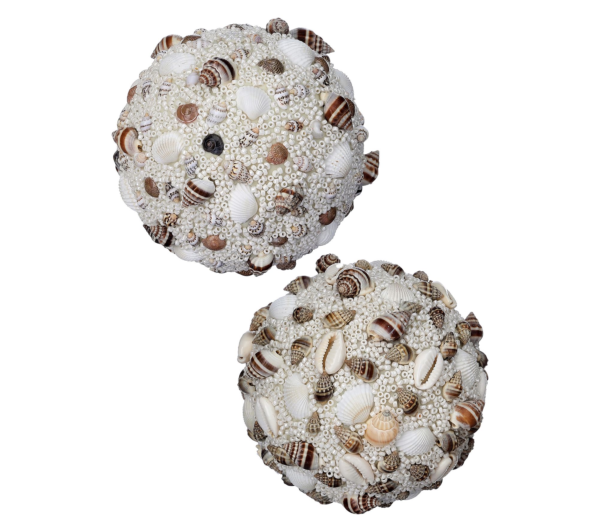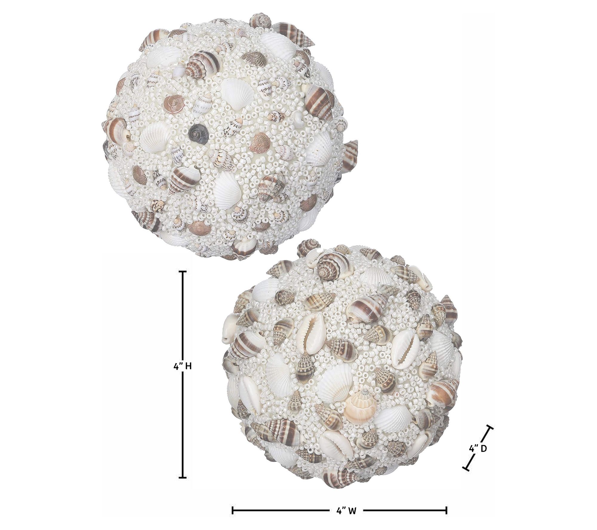 Add a touch of coastal charm to your home with the 4" Beaded Shell Orb Set of 2 from Valerie. These exquisite glass orbs are adorned with delicate beads, meticulously mimicking the intricate texture of seashells. Perfect for beach-inspired decor, they shimmer with a soft, pearl finish that captures the light beautifully, making them a versatile accent for any room. From the Valerie Parr Hill Collection.