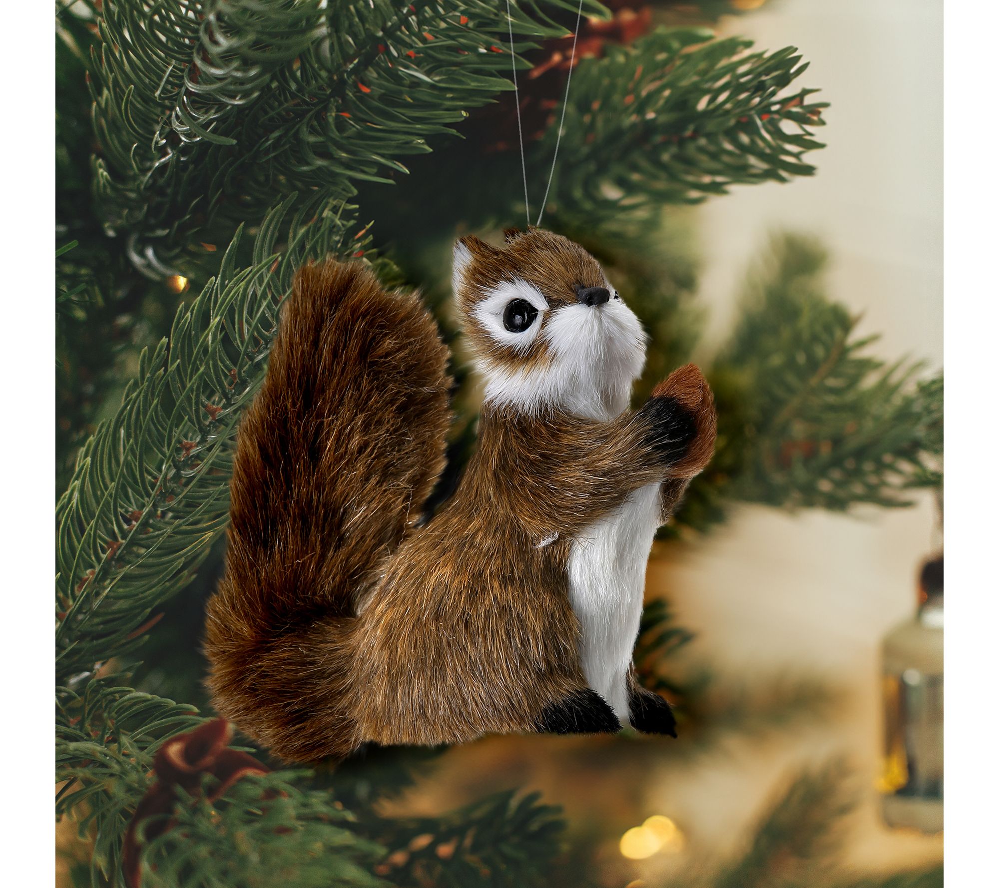 • Includes two furry squirrel ornaments