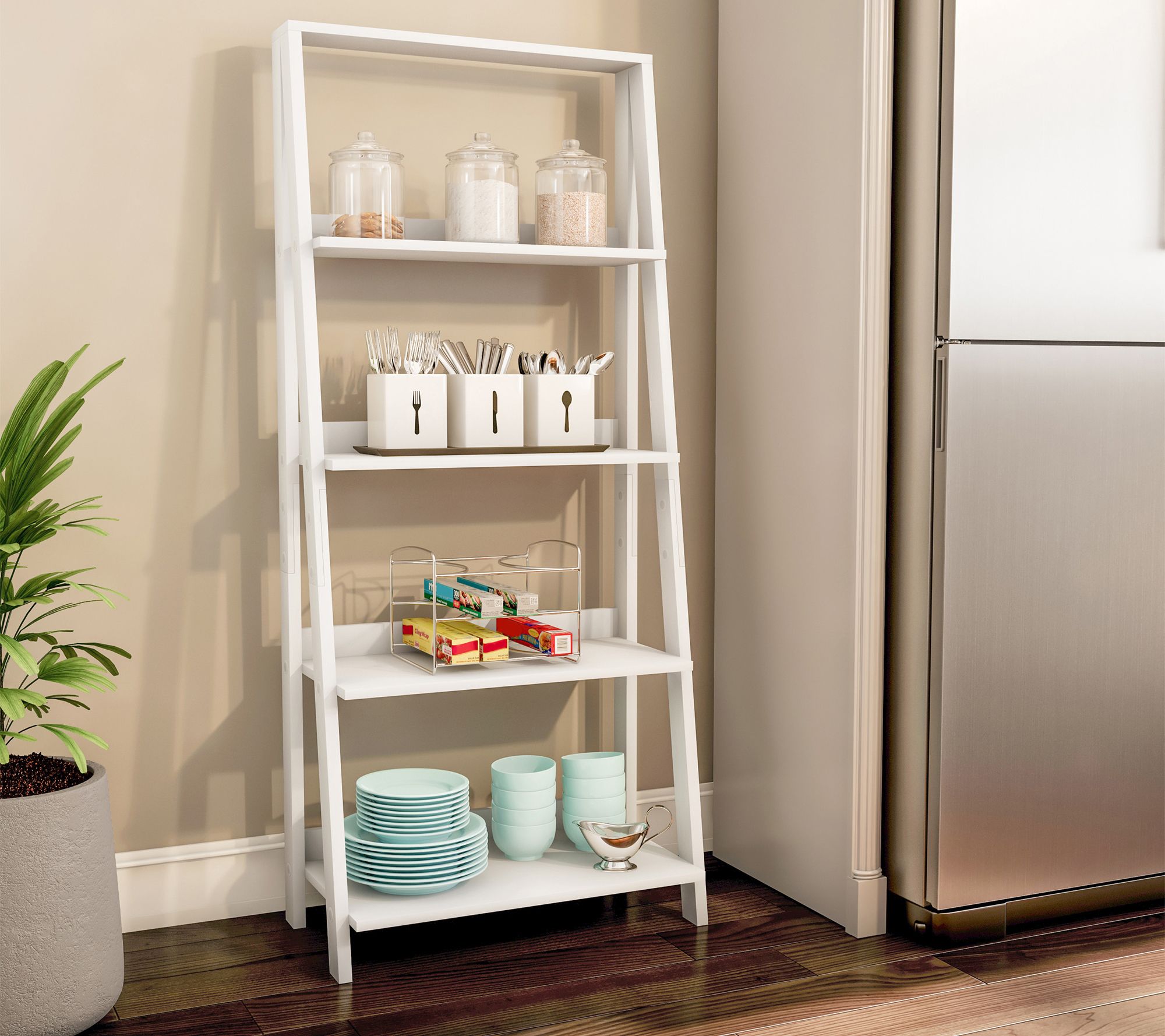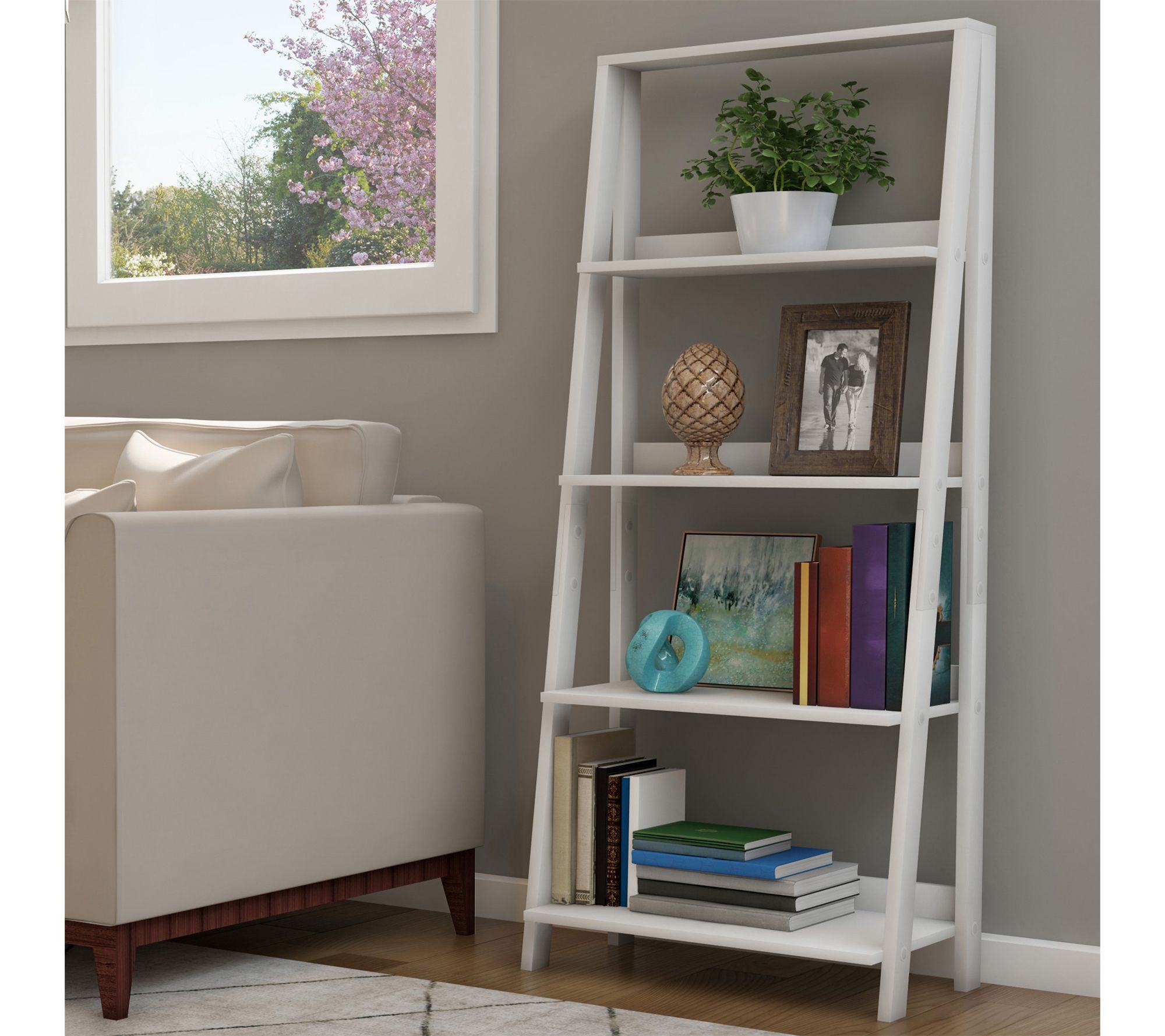 4-Shelf Decorative Ladder Bookshelf, White - Hastings Home