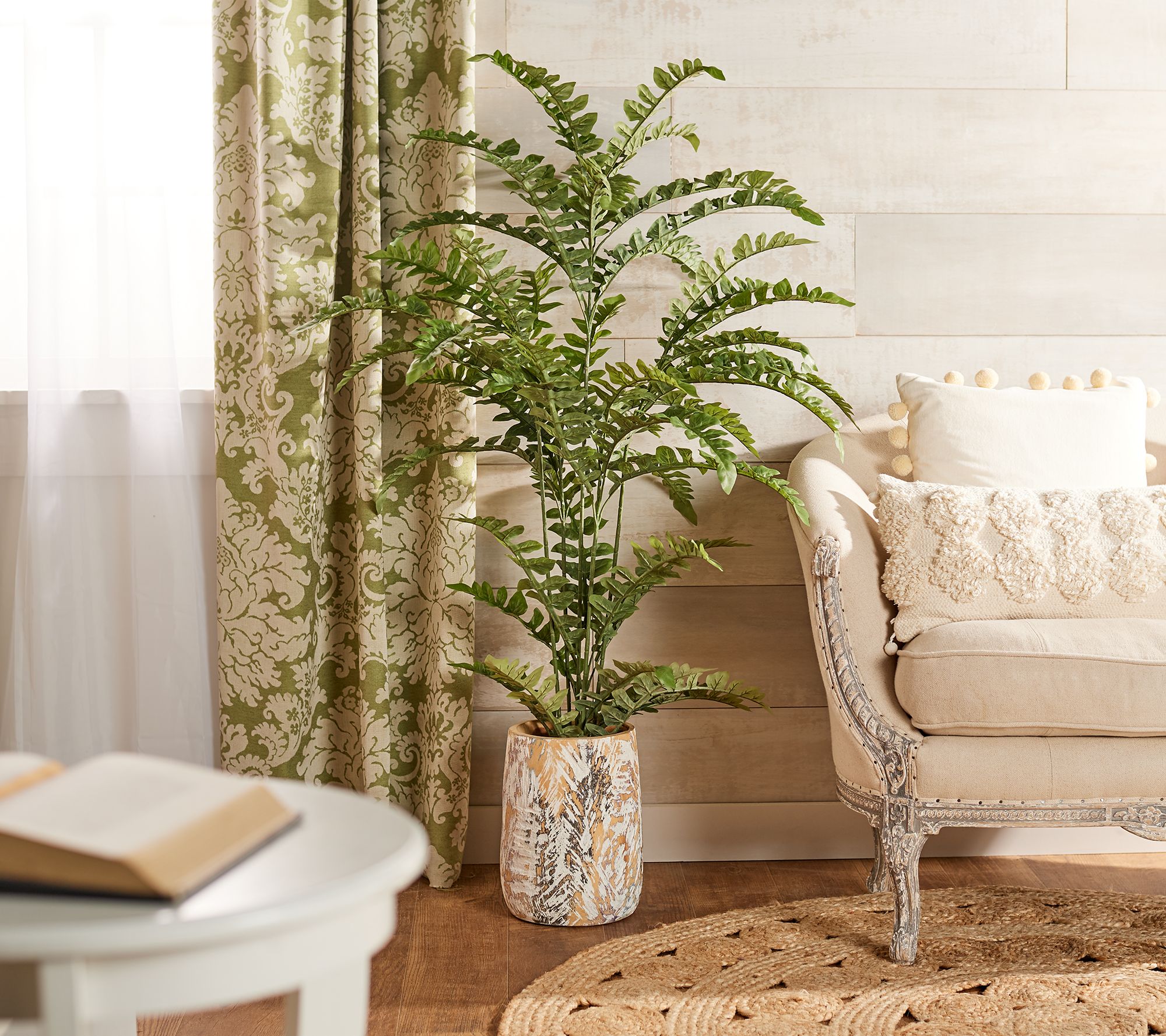 Fill your house with the look of this fabulous faux fern tree. It comes nestled in a weighted pot that is sized perfectly to fit within another decorative container. From the Valerie Parr Hill Collection.