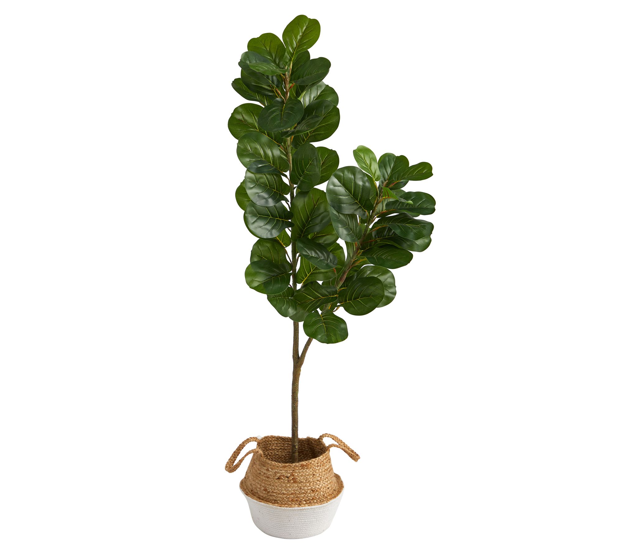 4.5' Fiddle Leaf Fig w/Woven Planter by Nearly Natural