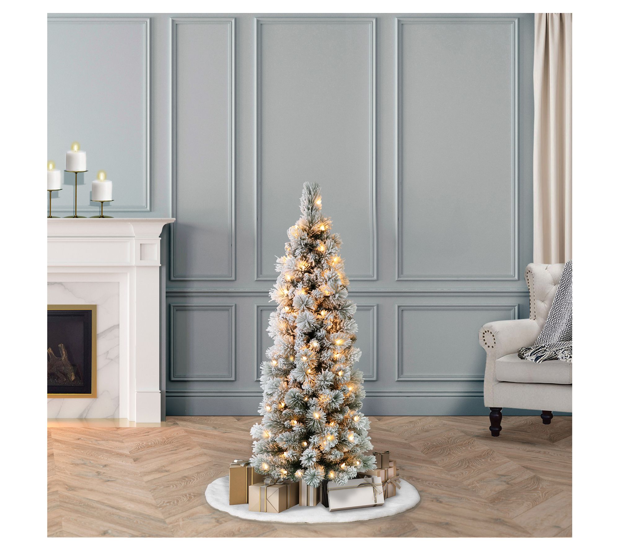 Inspired by lush wintry forests, this flocked Patagonia pine tree looks freshly dusted with snow to bring holiday glamour to your decor. With over 100 tips and dazzling lights, it's a joy to behold. From Puleo International.