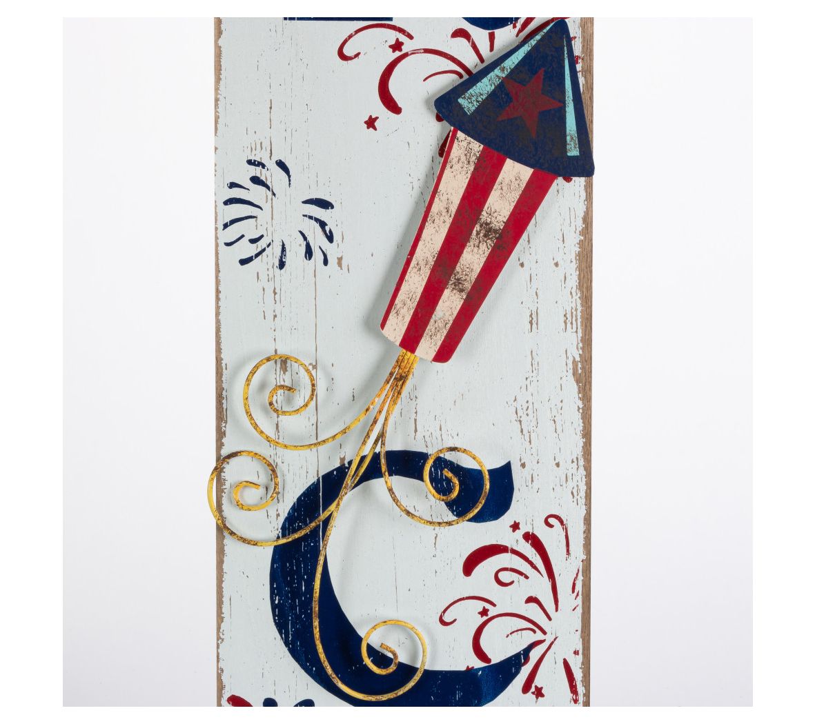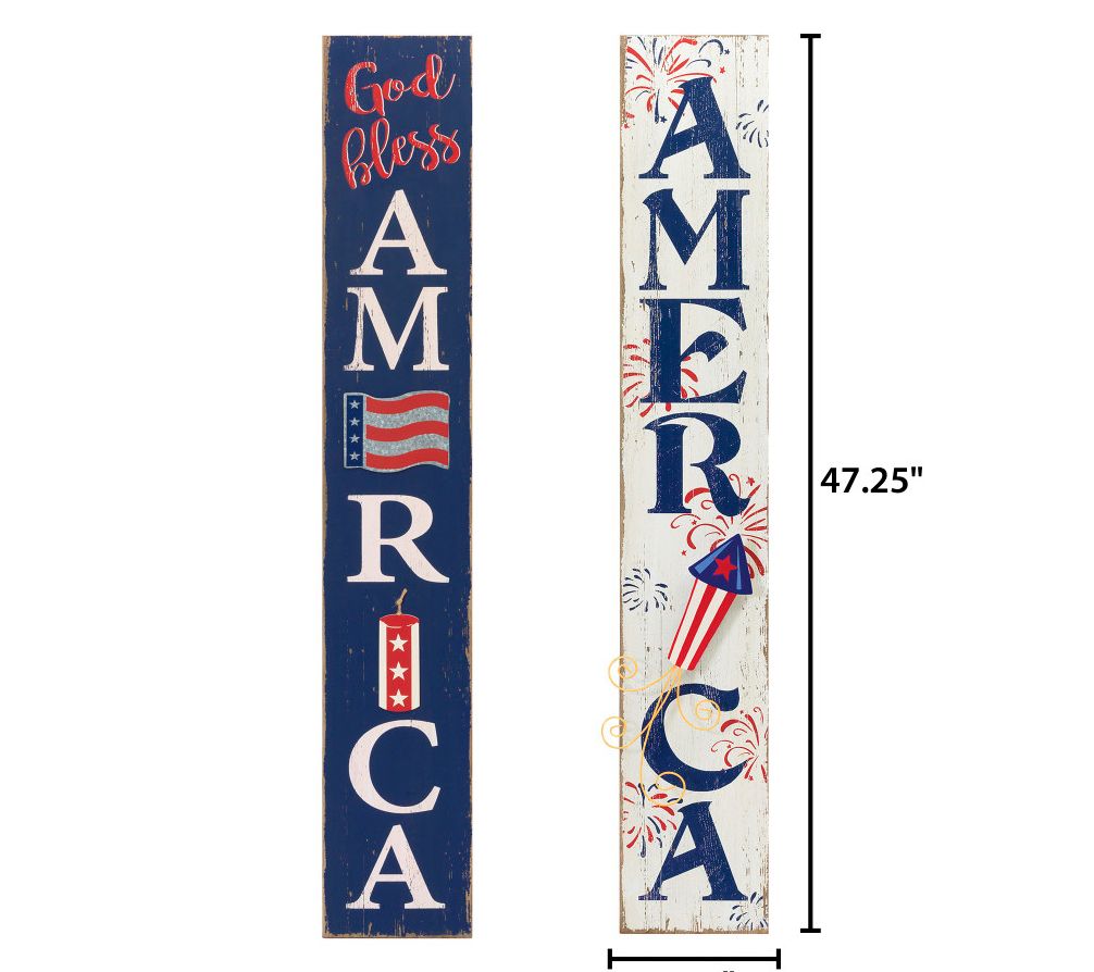 Celebrate your patriotism with a touch of charm with this set of two wood patriotic wall decor pieces. Accentuated with metal accents and whimsical firecracker embellishments, these signs effortlessly bring festive spirit to any indoor or outdoor space. From Gerson International.