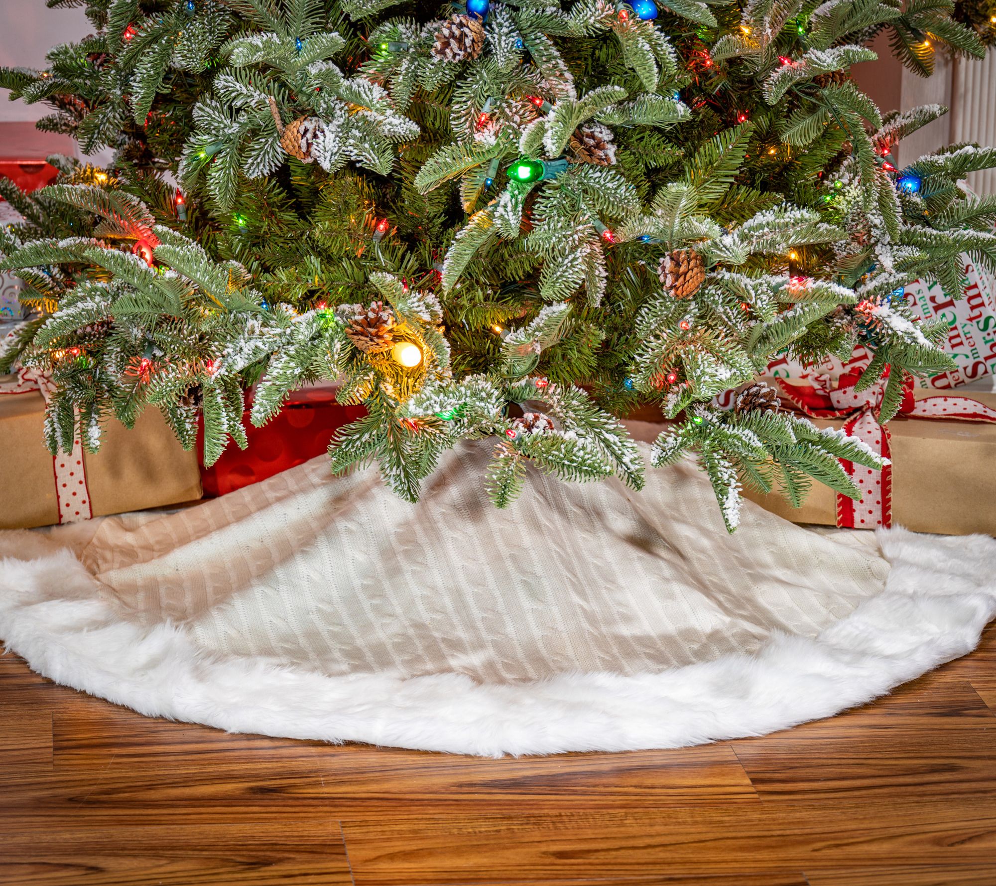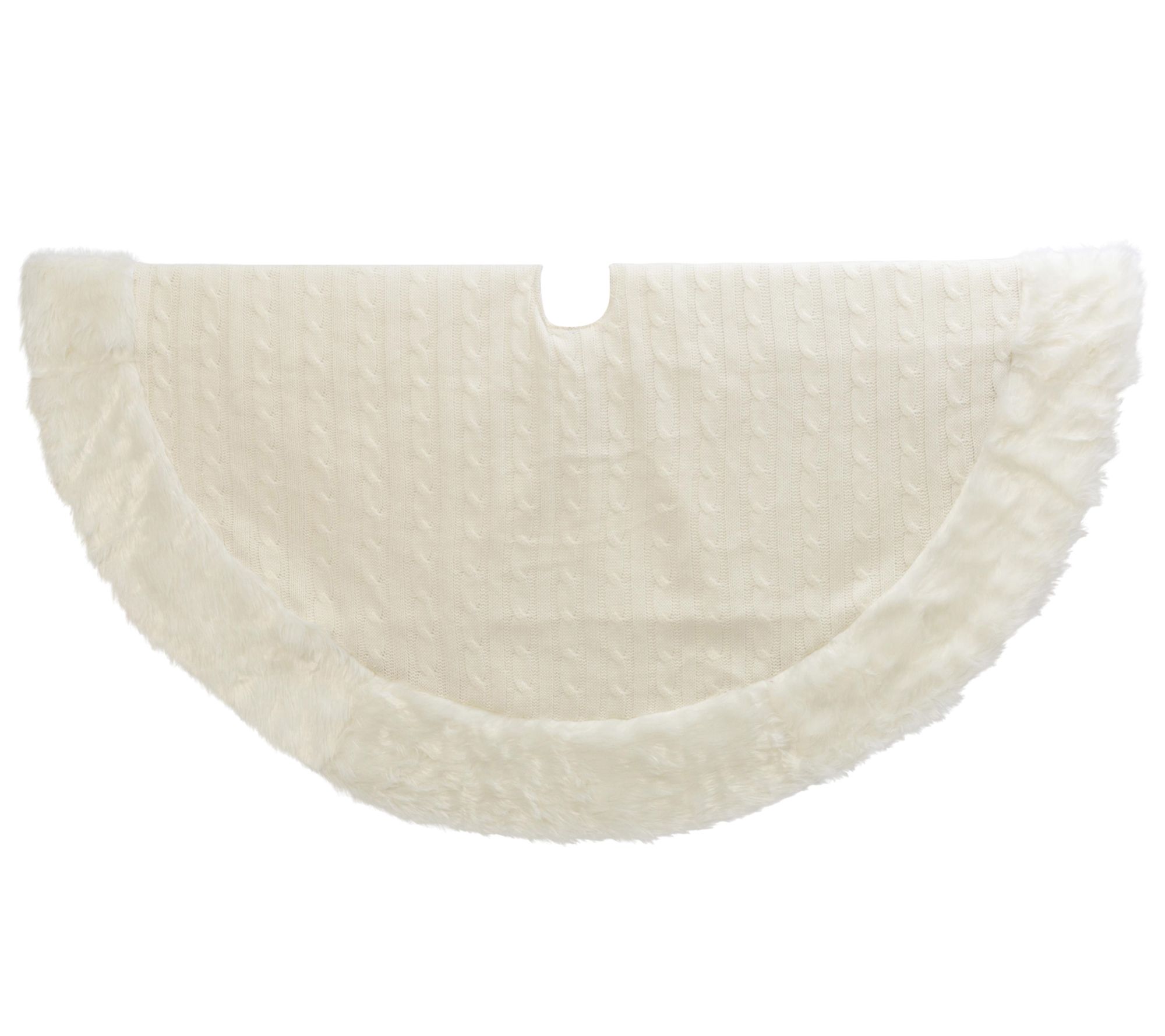 48-in D White Cable Knit Fur Trim Tree Skirt byGerson Co