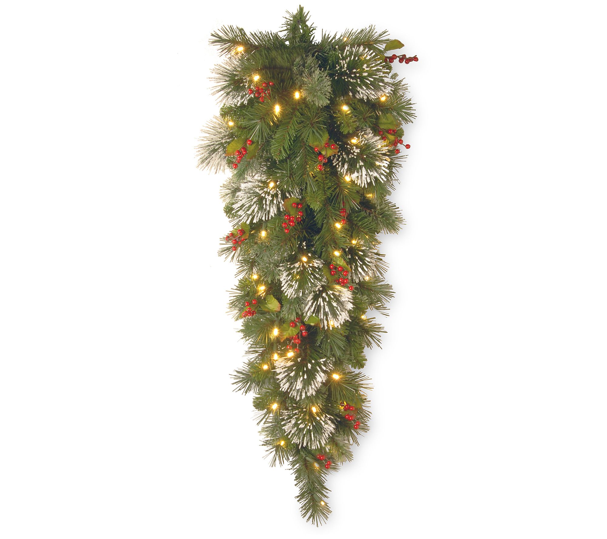 48" Wintry Pine Teardrop w/Batt Op White LED Lights