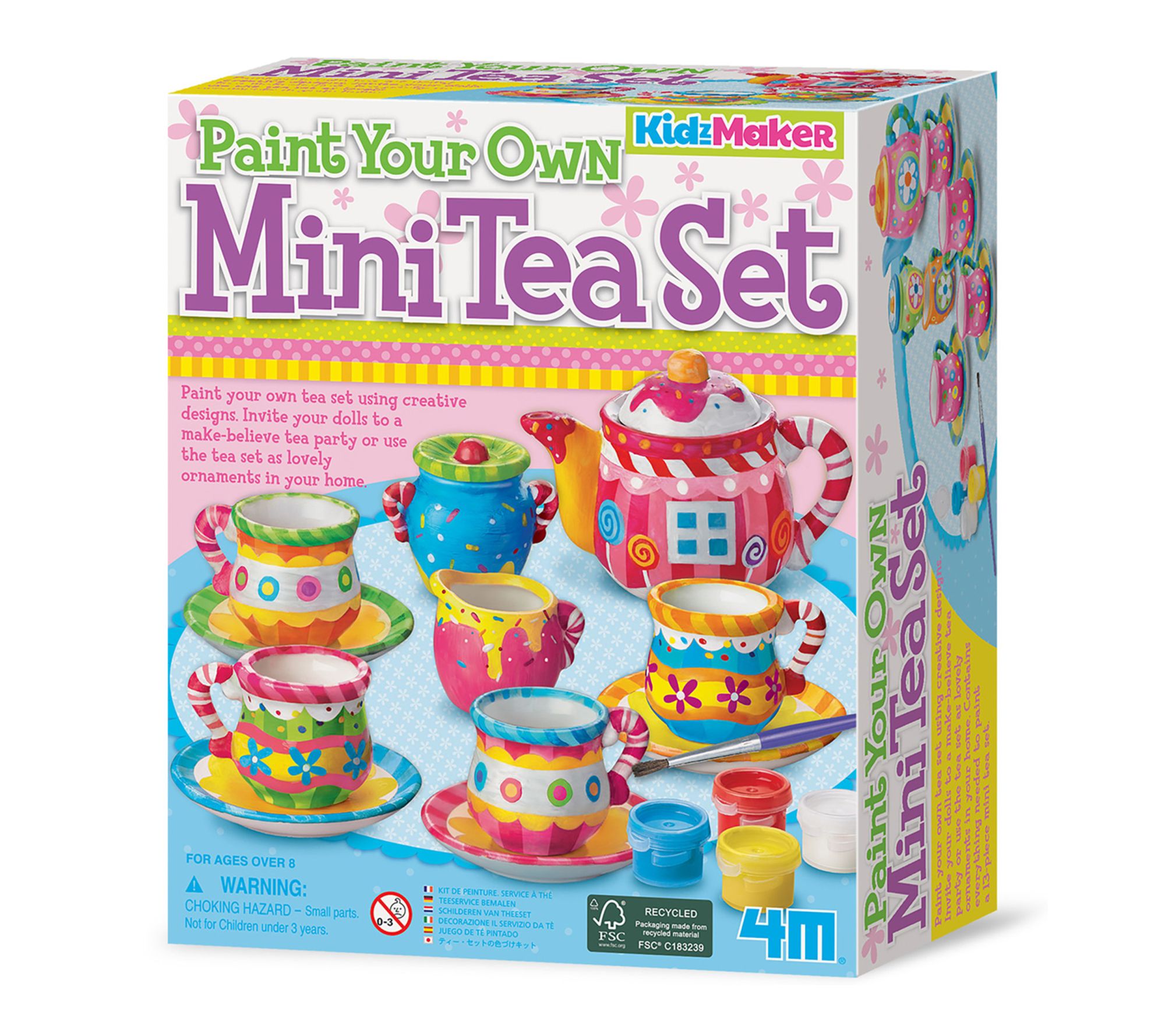 Bring imagination to life with the KidzMaker Paint Your Own Mini Tea Set, a porcelain craft kit that lets kids and adults alike design and decorate a charming tea set for pretend play or display. Host whimsical tea parties with dolls or create delightful ornaments, all while exploring creativity and building fine motor skills. From 4M.