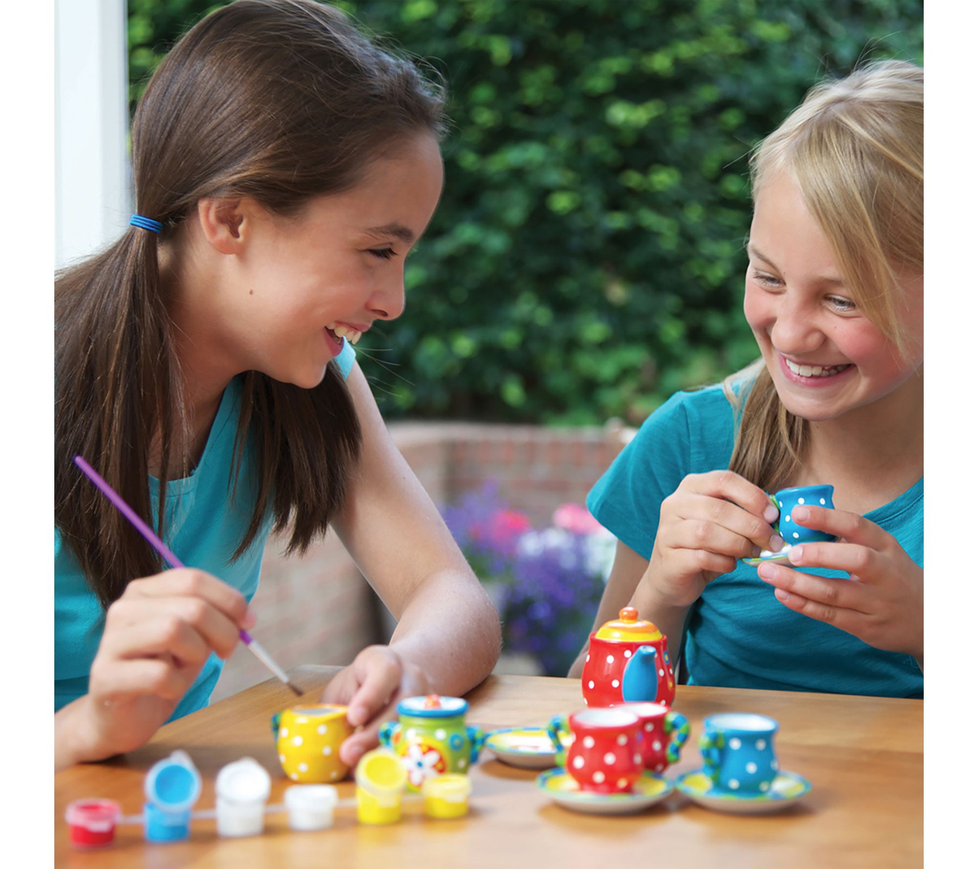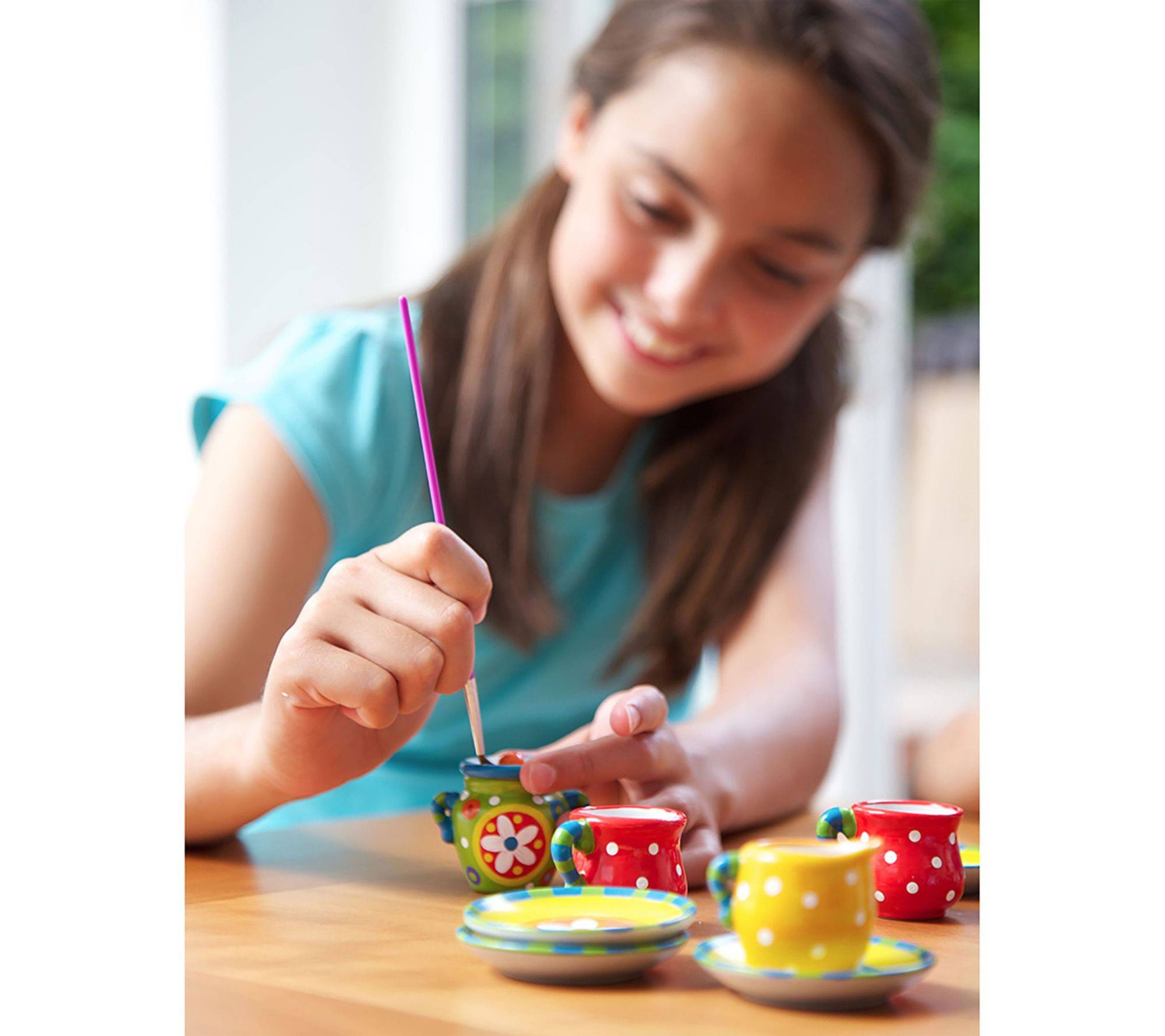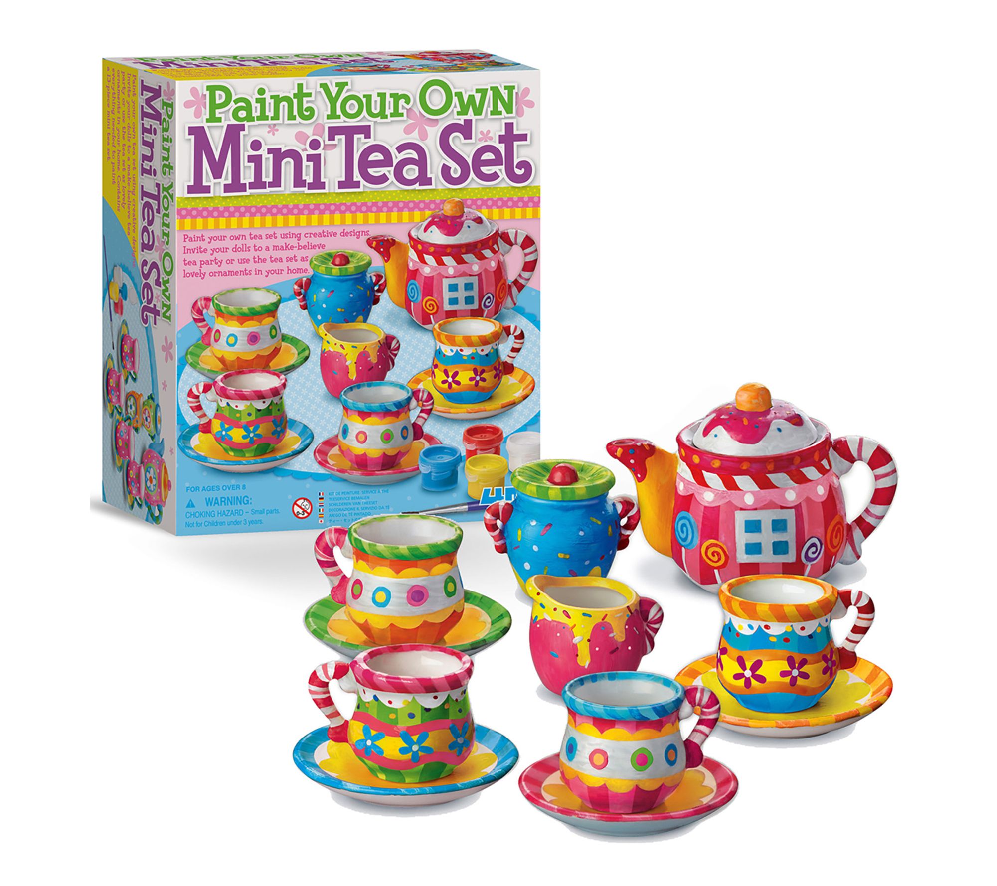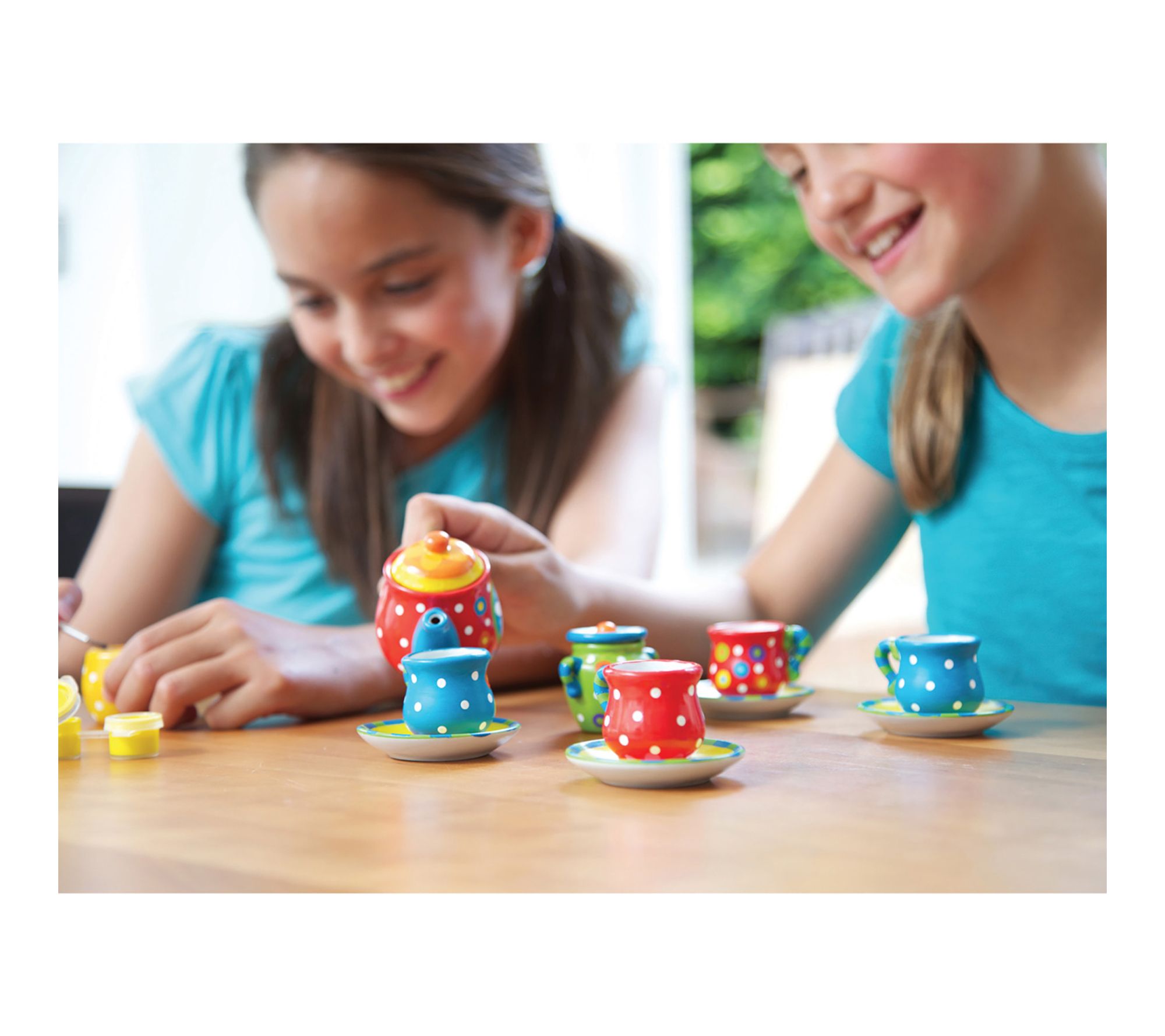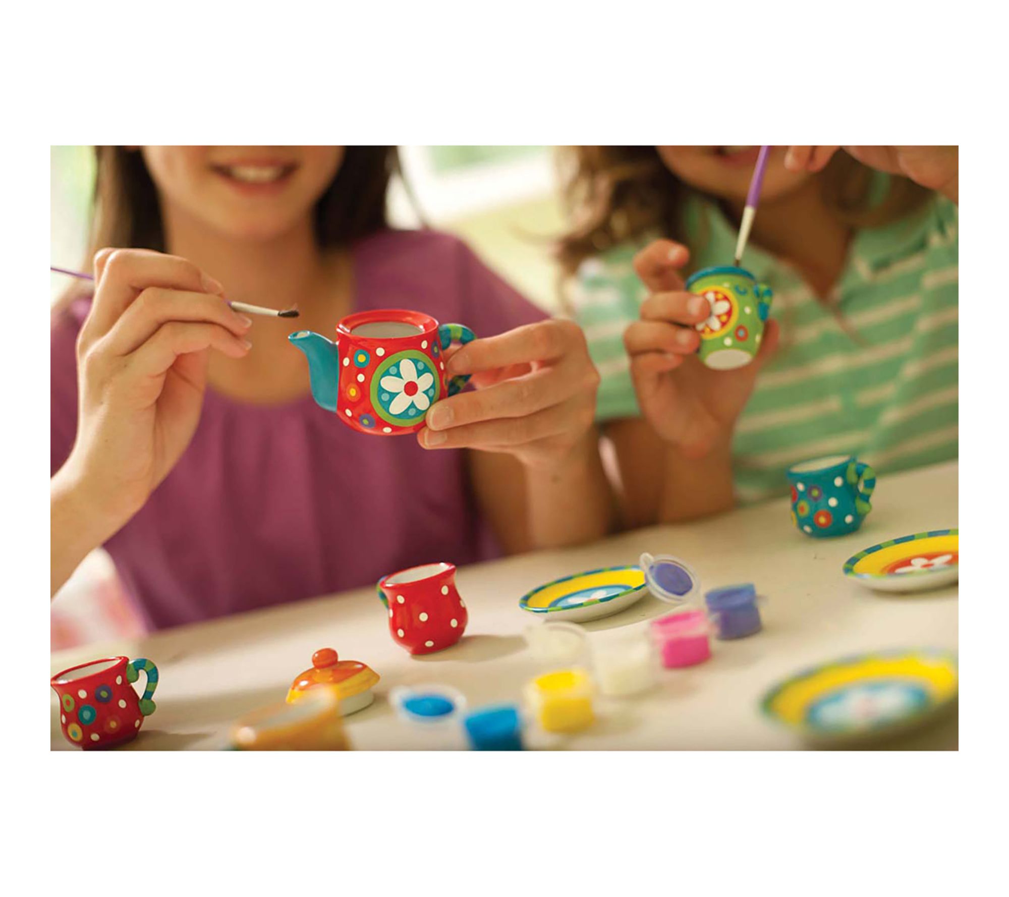 • Includes 13-piece porcelain mini tea set, paintbrush, paint strip, instructions