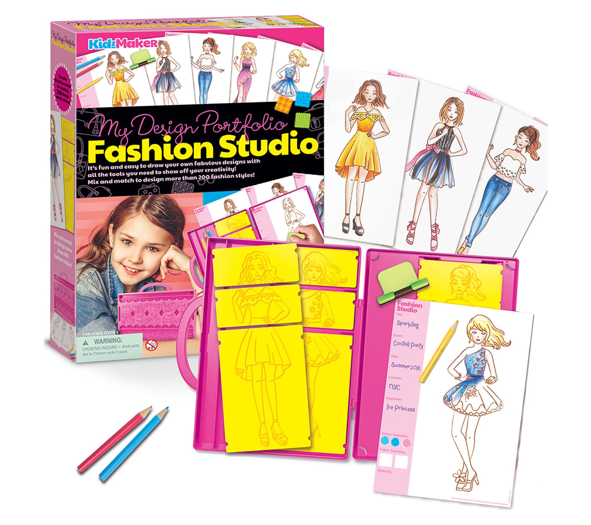 • Includes nine fashion plates, three color pencils, one crayon, one crayon holder, ten sheets of design paper, one storage case, and detailed instructions