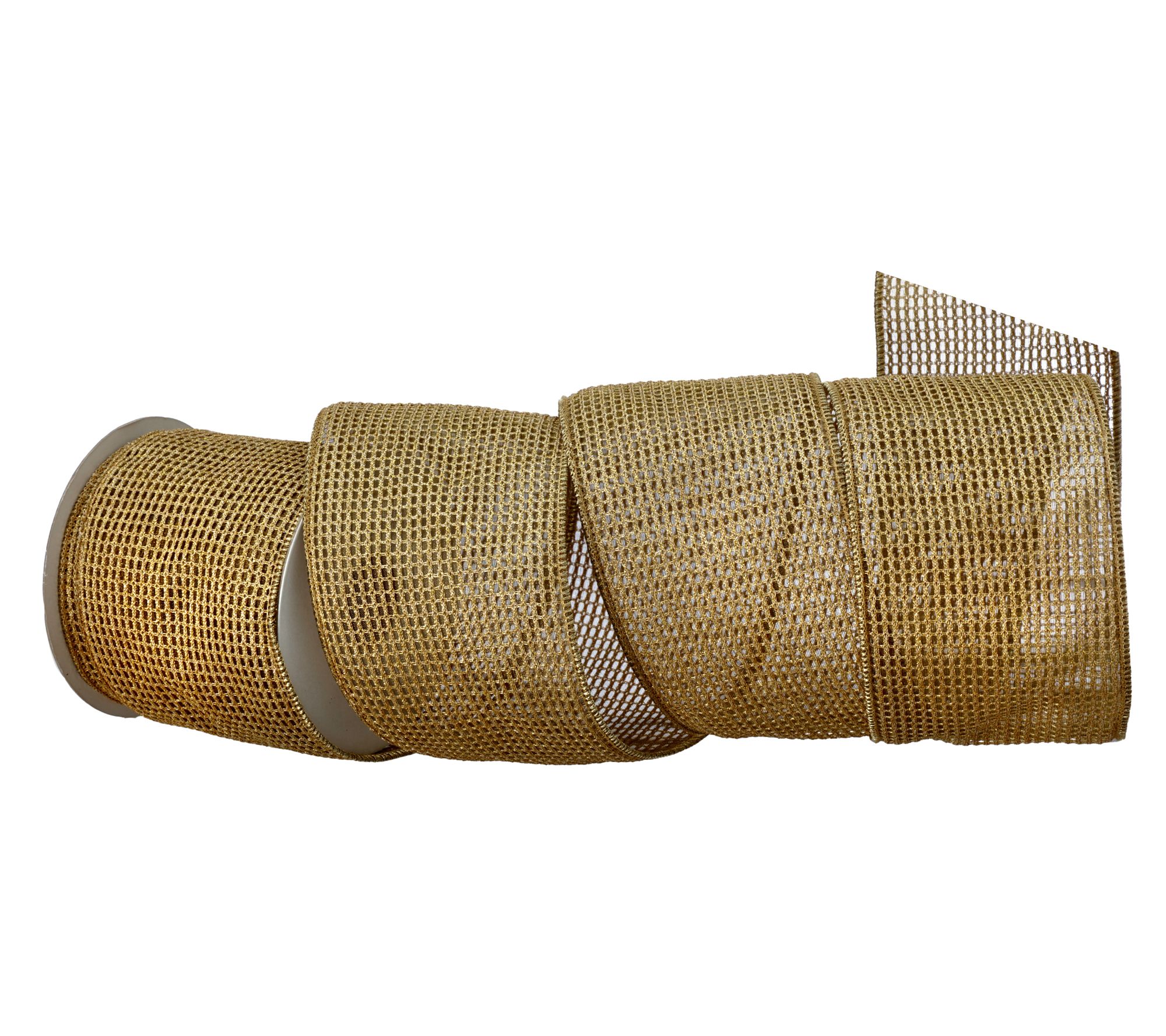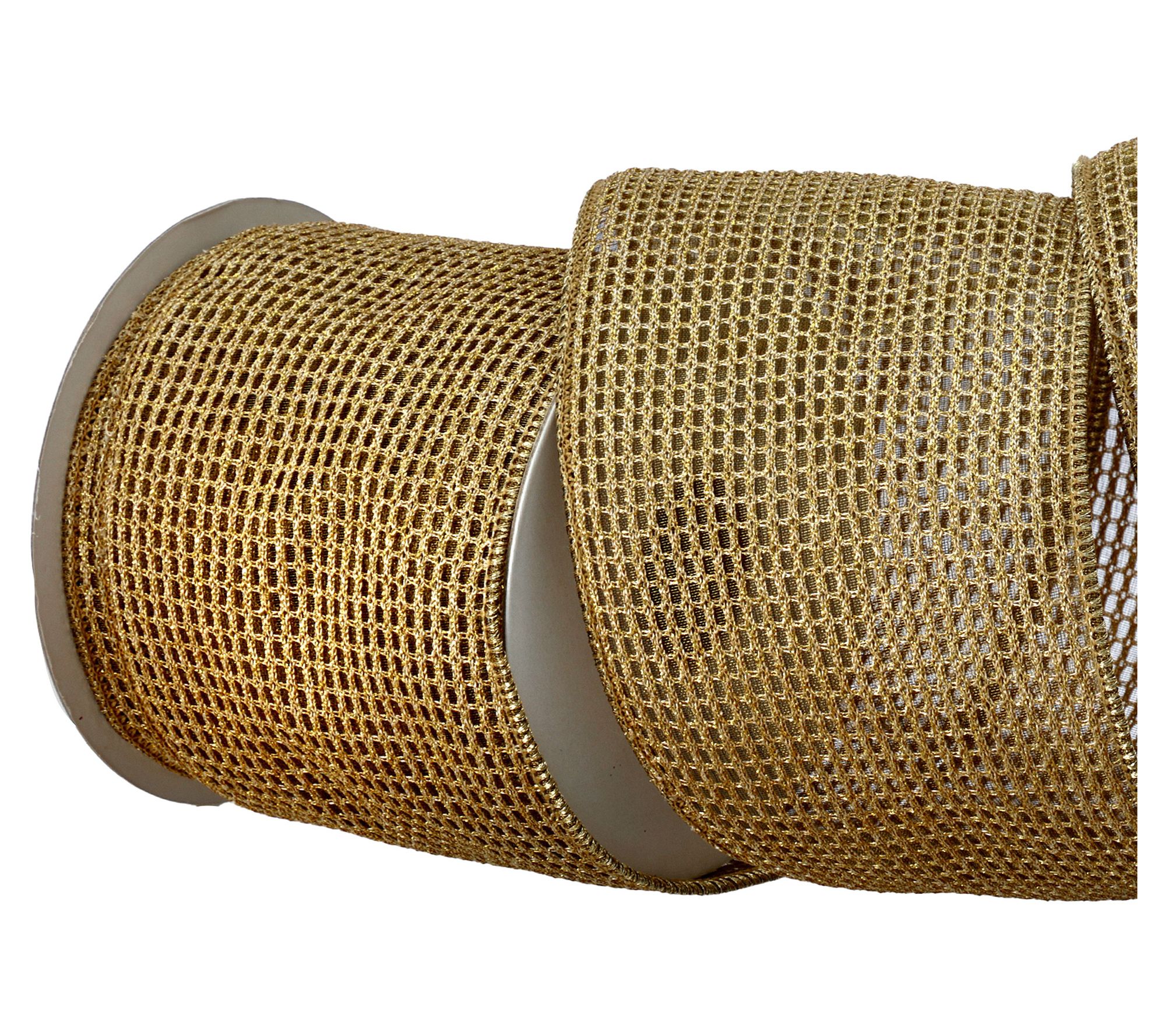Sparkle and shine take center stage when you use this metallic mesh ribbon to elevate wreaths, garlands, and centerpieces. The flexible, open-weave design lets you craft bold bows and festive accents with ease, bringing a pop of shimmer to Christmas displays, wedding decor, or any special occasion. From the Valerie Parr Hill Collection.