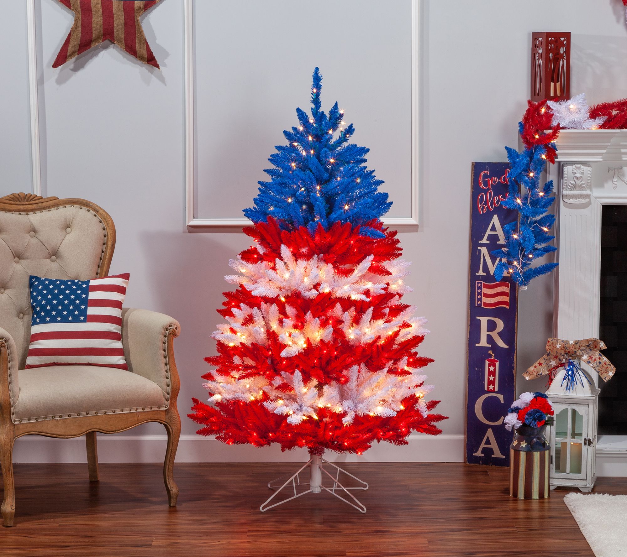 This grand old tree is the emblem of the holiday you love. Every heart beats true under red, white, and blue, and gifts will look just as glorious underneath this patriotic faux pine.