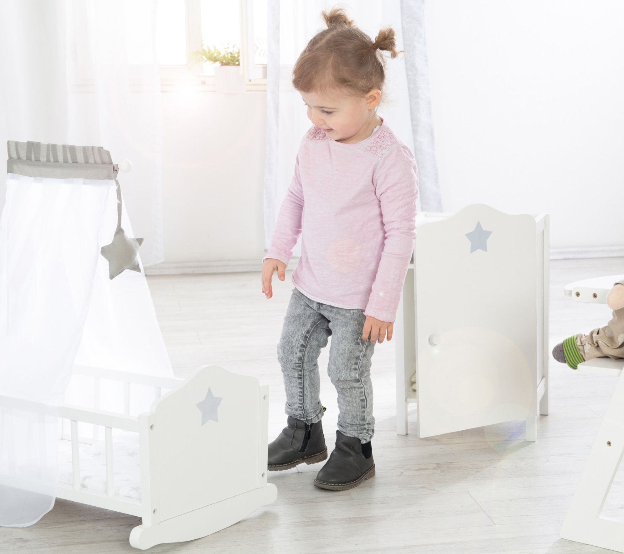 Give your favorite doll or stuffed animal a cozy place to sleep with the Roba Stella Classic Style Doll Cradle. Featuring a child-friendly design, it's ideal for playrooms or bedrooms, adding a touch of charm to any space. From Roba.
