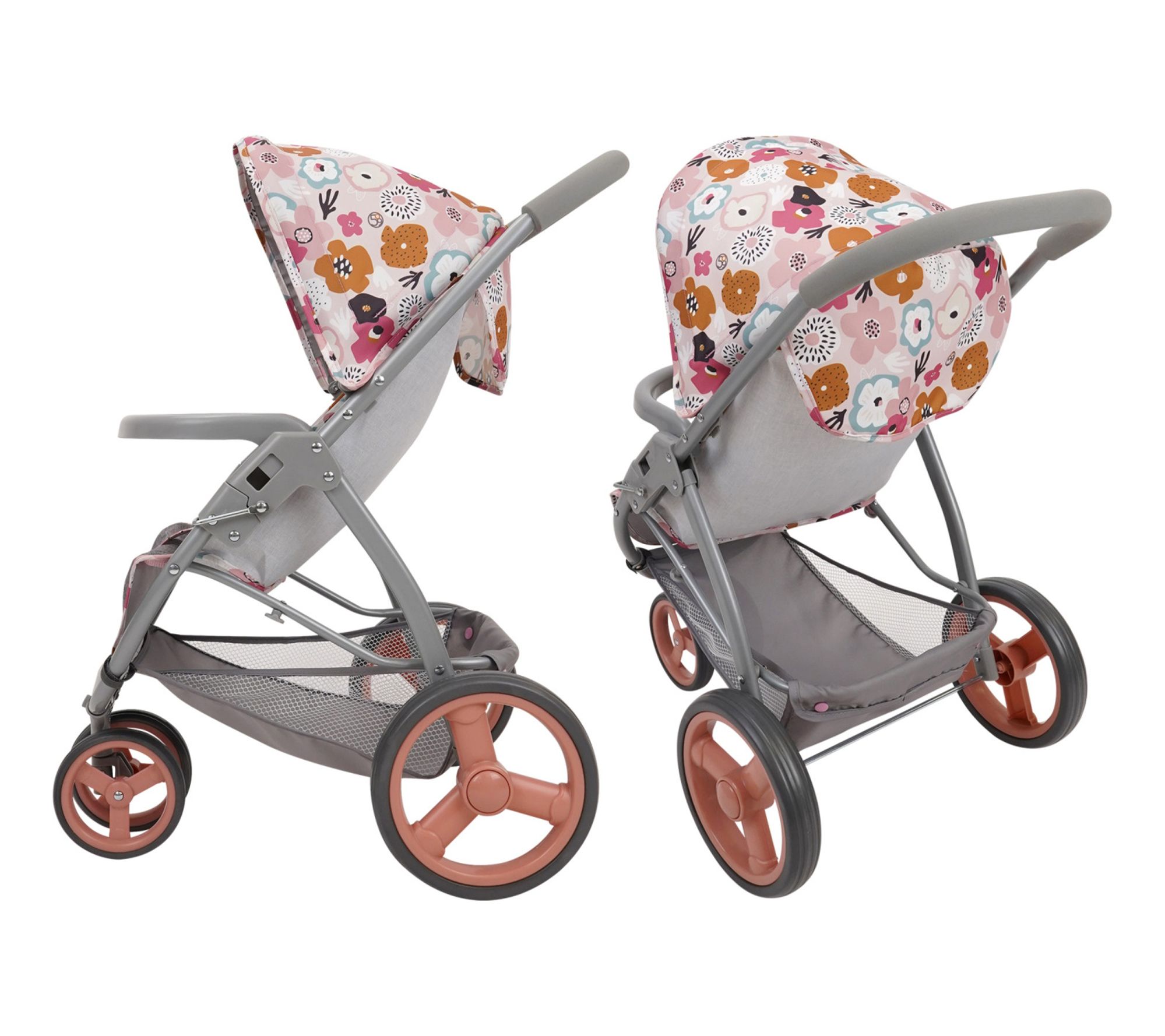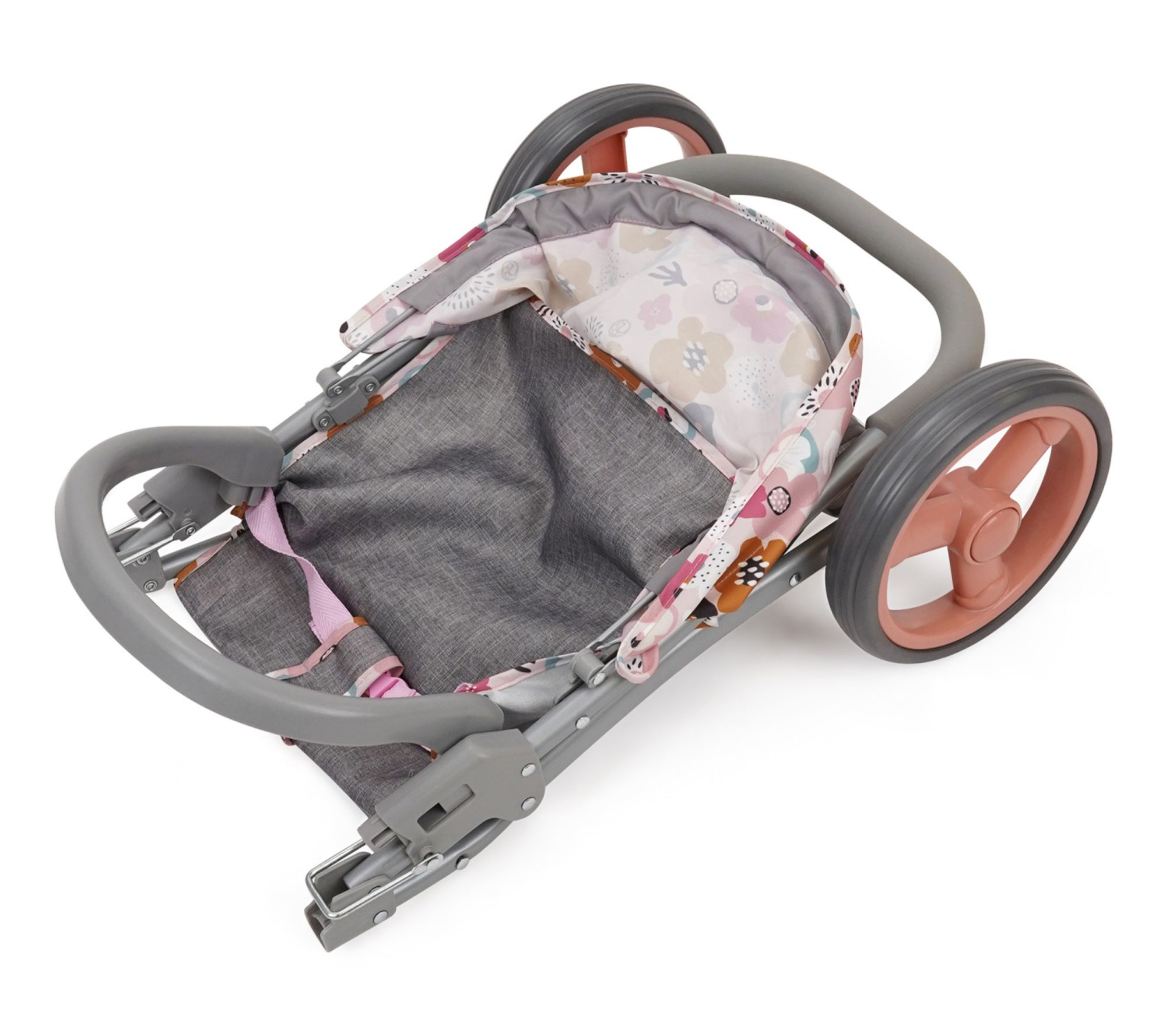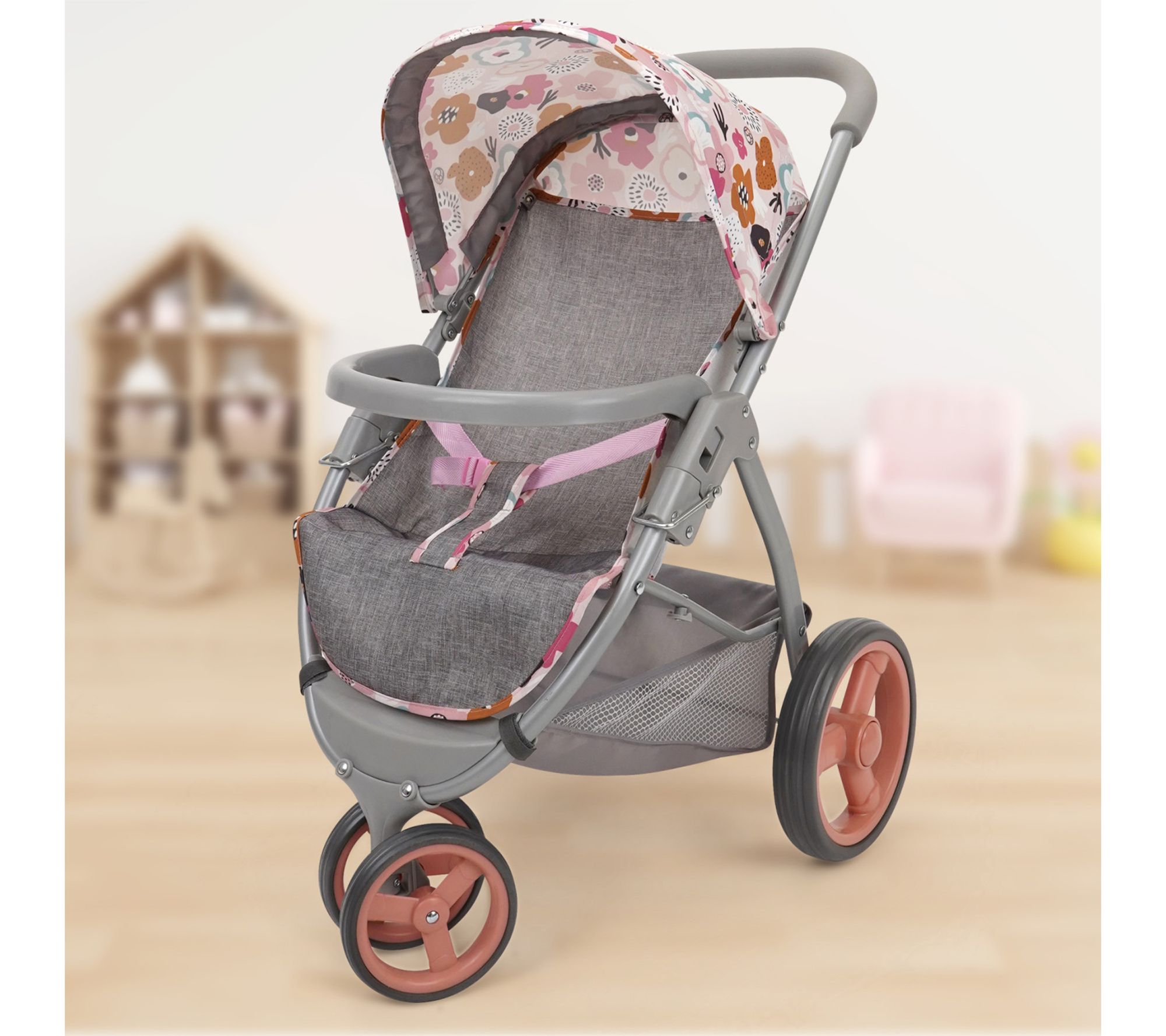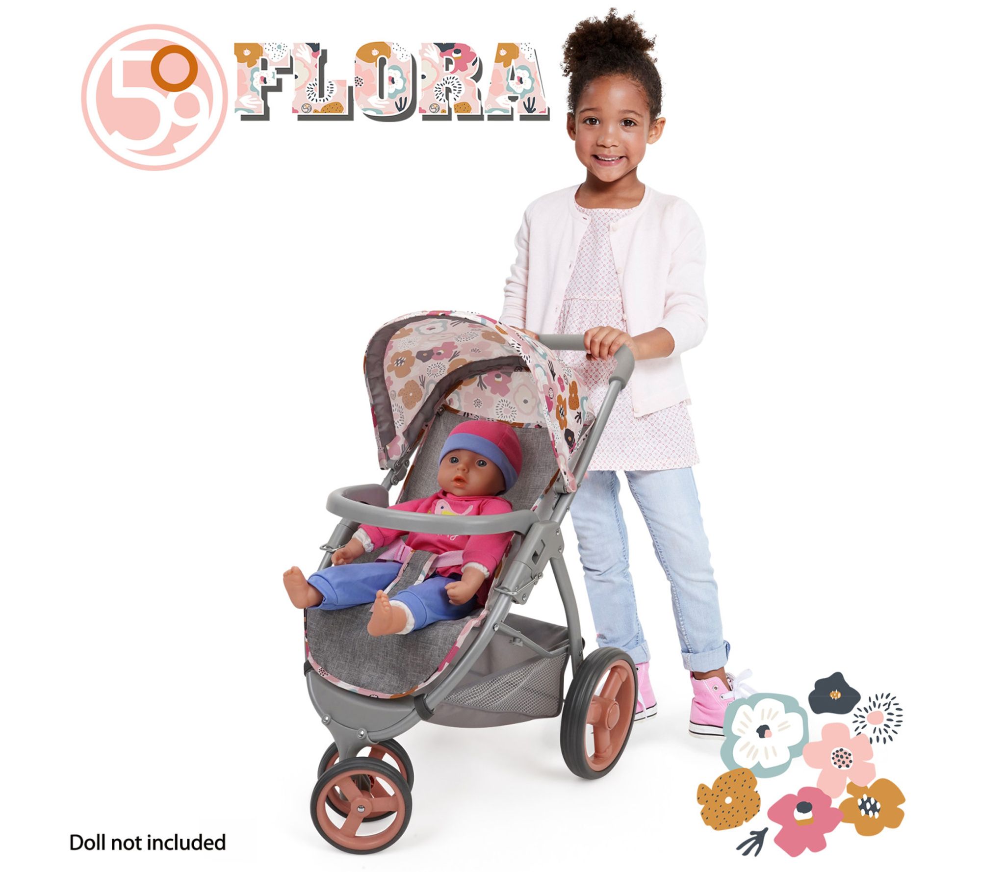 The 509 Crew Mabelle three-wheel doll jogger stroller in Melange Flora is perfect for little caregivers on the go. Its easy-fold mechanism and spacious shopping basket make storage and outings a breeze, while the adjustable safety harness keeps dolls secure. Whether jogging, walking, or strolling, this vibrant, floral-patterned stroller ensures every adventure is stylish and fun. From 509 Crew.