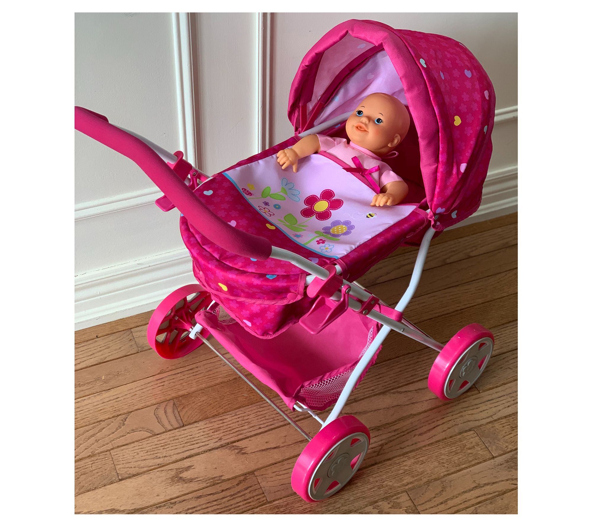 Your darling will love the classic design of this bright pink pram complete with a canopy that lets their doll enjoy the shade. From 509 Crew (Hong Kong) Limited.