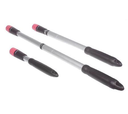 Telescopic handle measures 21"L to 32"L. Plastic case measures 22"L x 10-1/2"W.