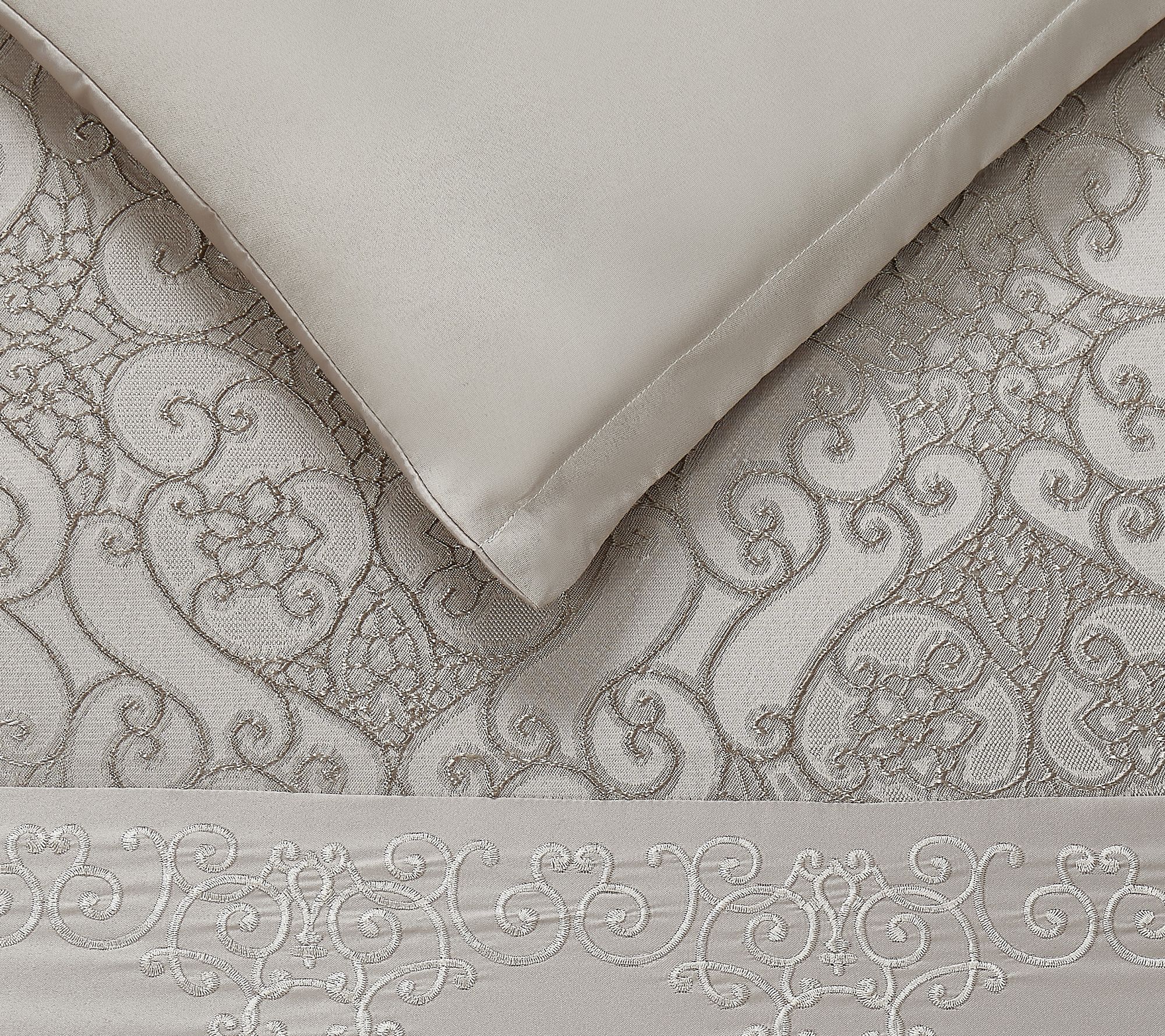 • Includes comforter, two shams, two European shams, decorative pillow, and square decorative pillow; additional items (shown) not included