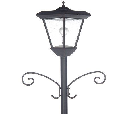 Create a distinctive, welcoming accent in your yard with this solar-powered lamppost. No installation, wiring, or digging needed--just position the post in a sunny spot. With two decorative hangers for your flowerpots, it makes an attractive accent by day and a welcoming source of light by night.