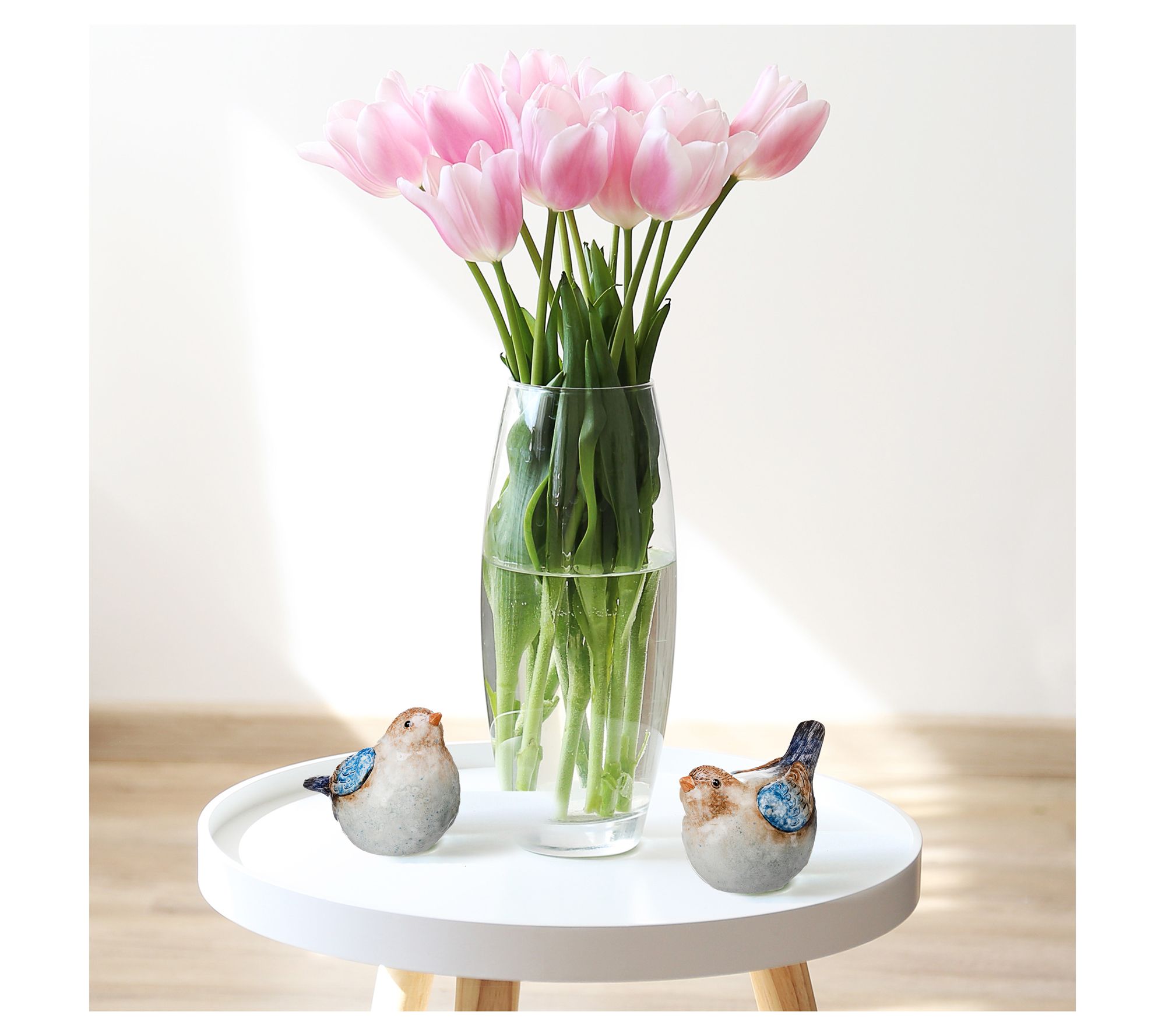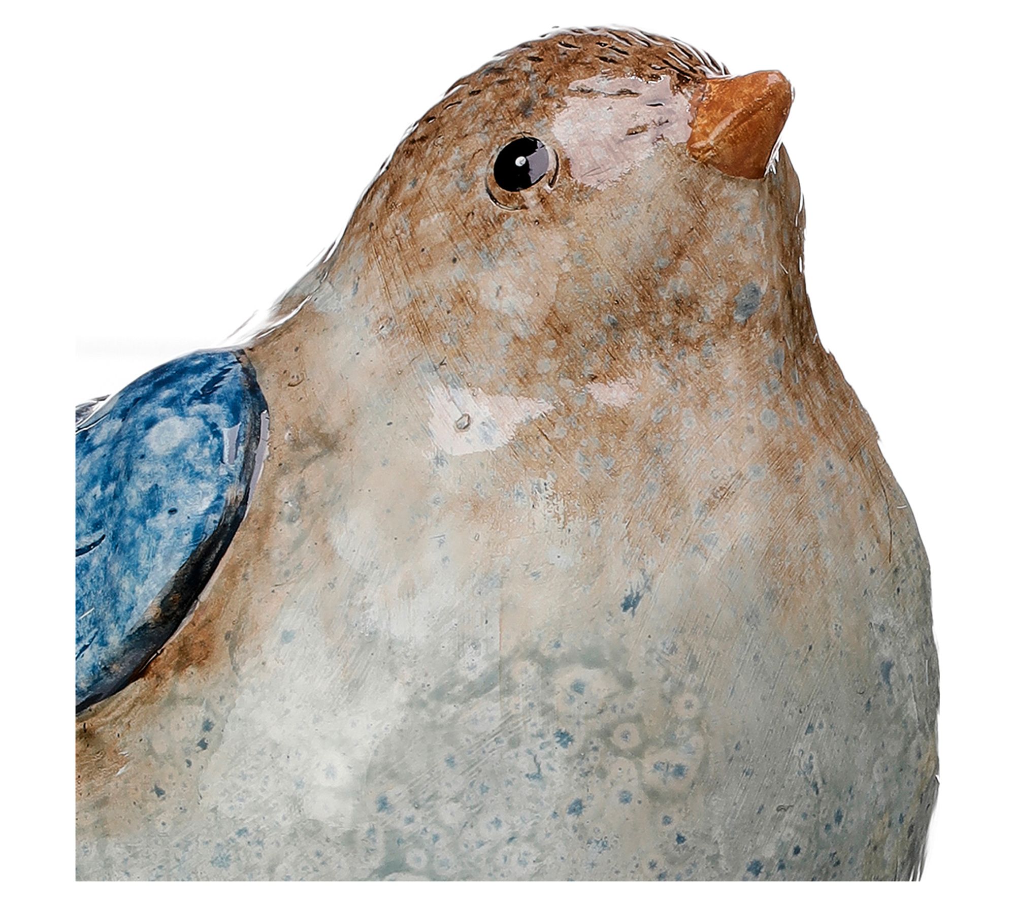 Enhance your home decor with the vibrant charm of these terra-cotta blue birds. Perfect for adding a touch of nature indoors, these detailed figurines boast beautiful blue, tan, and white hues. Place them on a shelf or tabletop to create a captivating focal point. From the Valerie Parr Hill Collection.