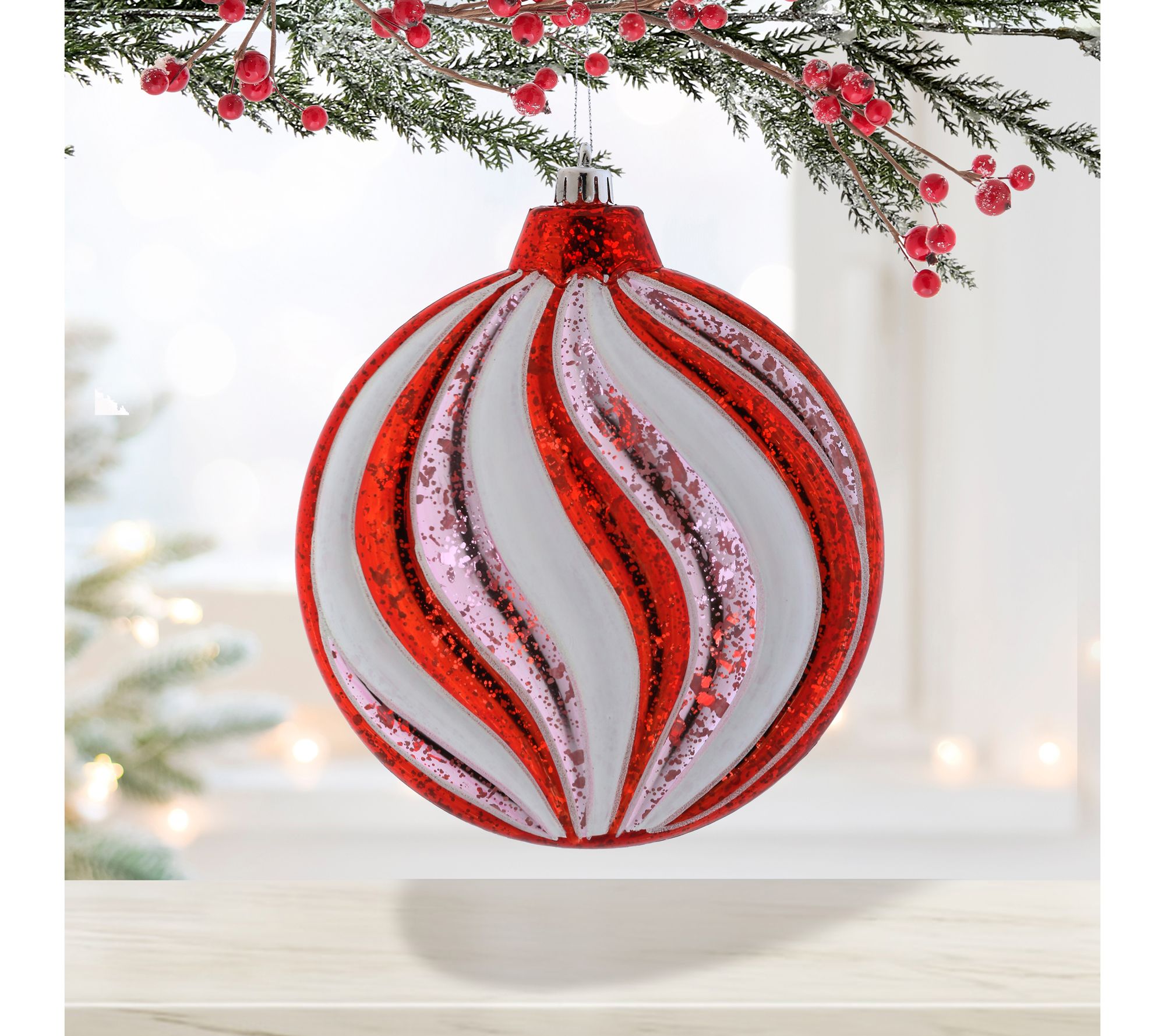 Add a classical touch to your holiday decor with this 6.5" swirl disk ornament set by Valerie. The mesmerizing swirl pattern catches the light beautifully, adding a dynamic and sophisticated flair to your Christmas tree, garlands, or festive displays. From the Valerie Parr Hill Collection.