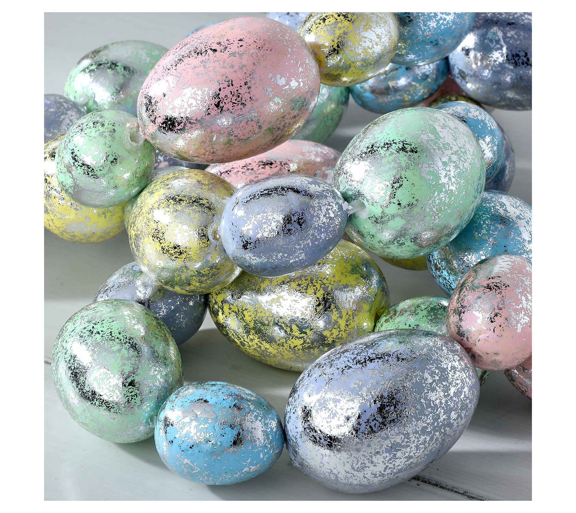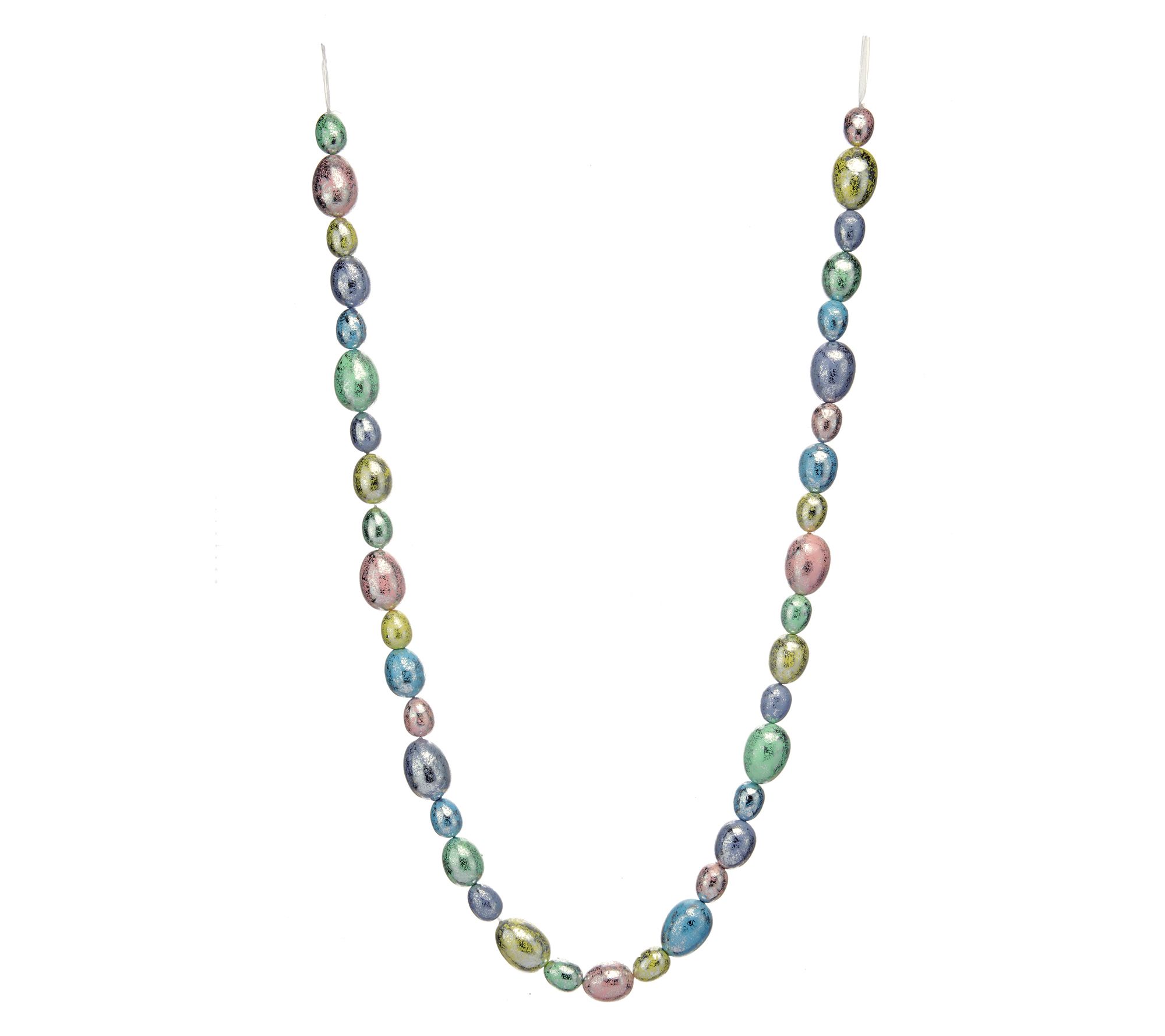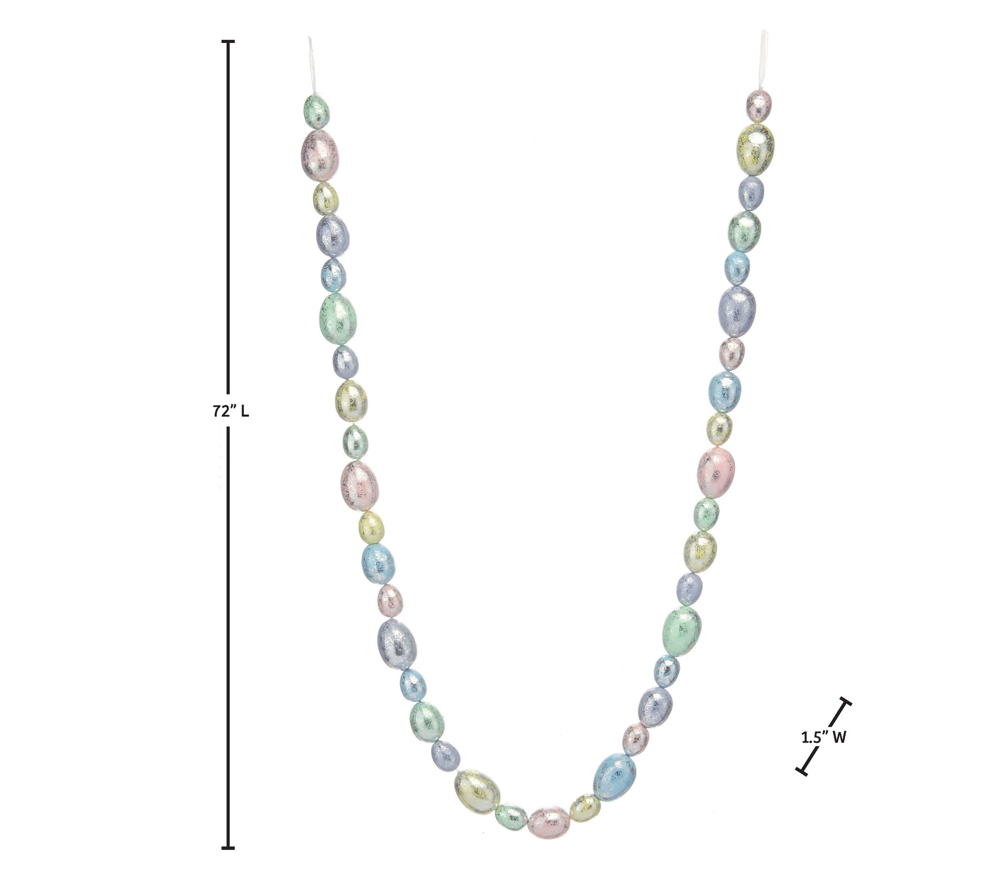 Celebrate the season with this beautifully crafted 72" vintage Easter egg garland, perfect for adding a nostalgic touch to your home decor. Featuring a collection of pastel-colored, vintage-inspired eggs, this garland brings a whimsical, Easter-ready vibe to any space. Ideal for draping across mantels, doorways, or as a table centerpiece, its soft hues and classic design make it a versatile addition to your springtime festivities. Whether you're decorating for Easter or simply bringing the spirit of spring indoors, this charming garland will bring joy and color to your home. From Valerie Parr Hill Collection.