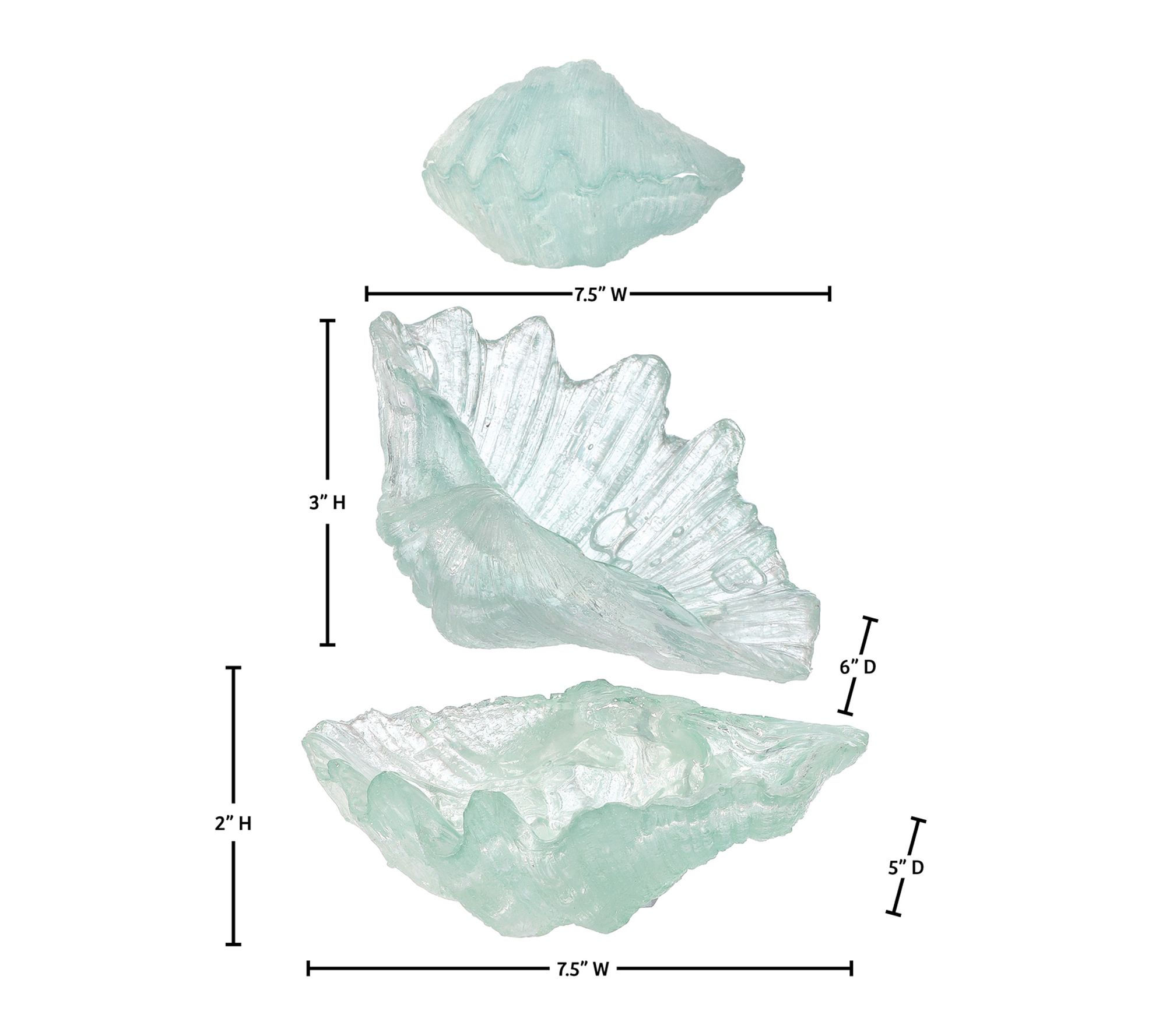 • Translucent aqua finish on each shell enhances natural-inspired texture