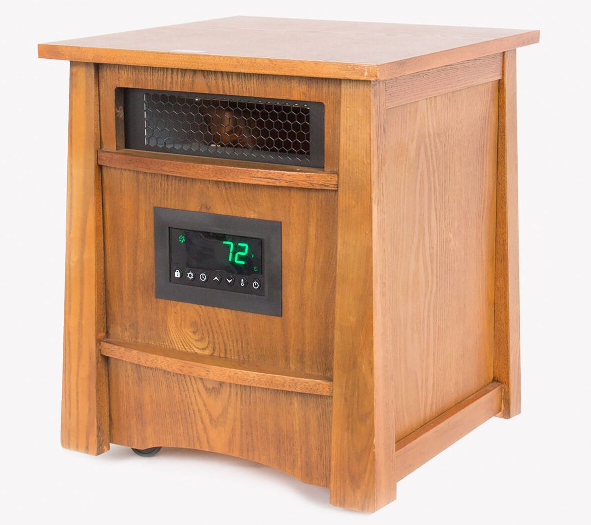 Complement your room decor with the all-wood cabinet of this three-setting heater featuring a remote control for quick adjusting. From LifeSmart.