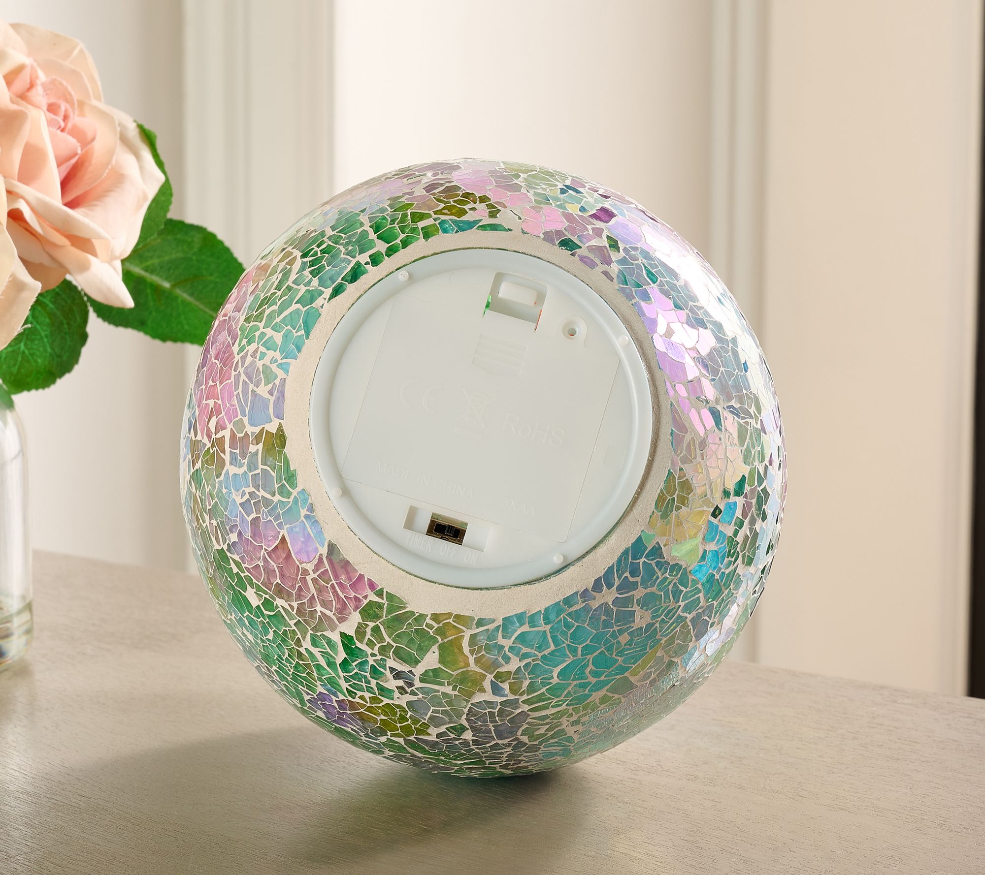 Shimmering with iridescence, this illuminated mosaic egg adds radiant color to your holiday displays. Its glass tiles catch the light beautifully, casting soft, inviting glows on mantels, side tables, or nestled into a festive centerpiece. From the Valerie Parr Hill Collection.