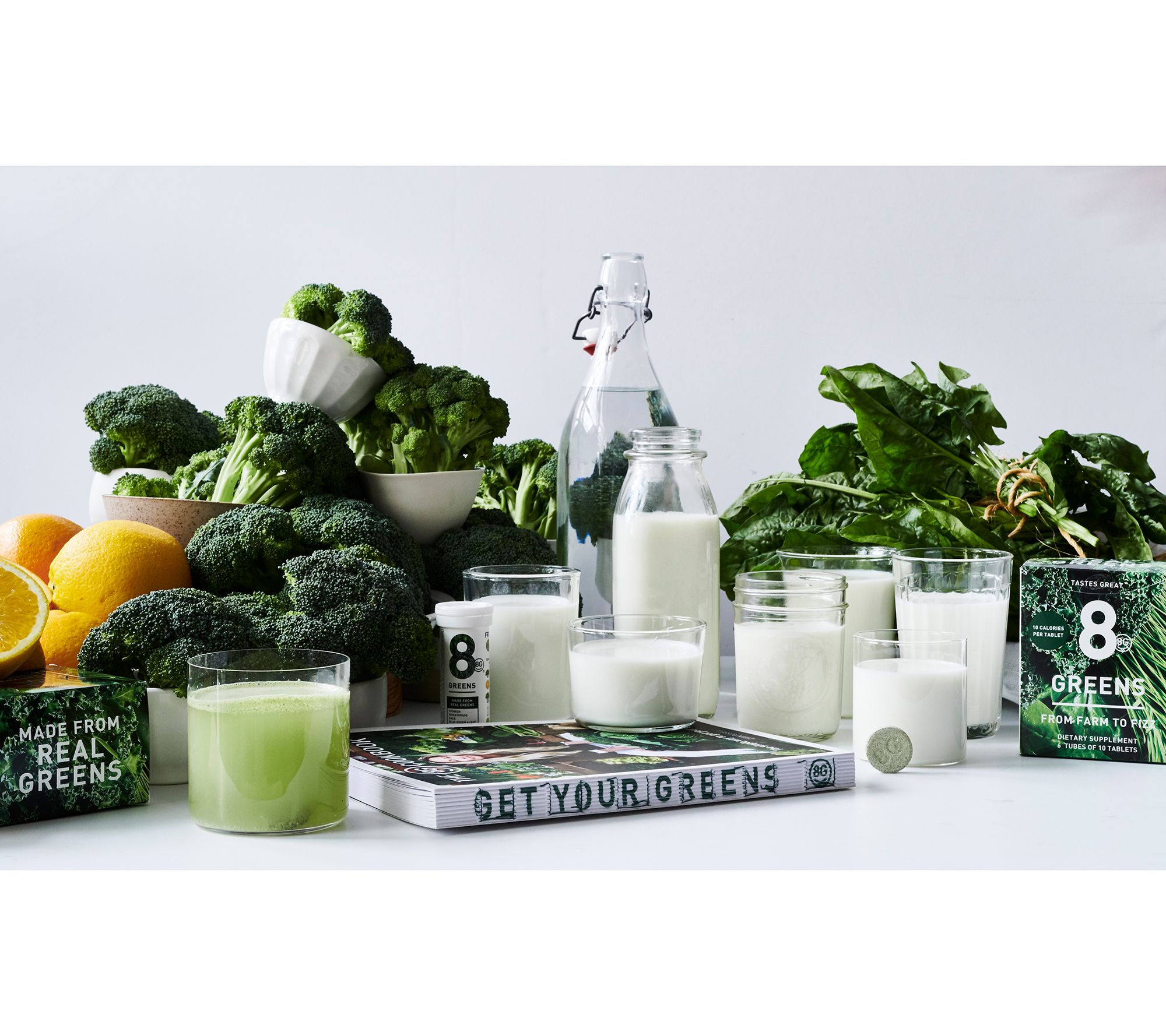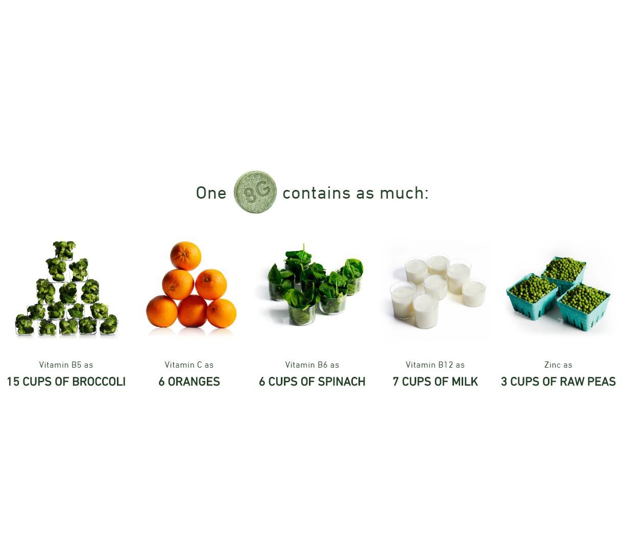 Includes six packs of 10 8G Greens Effervescent drink tablets for a total of 60