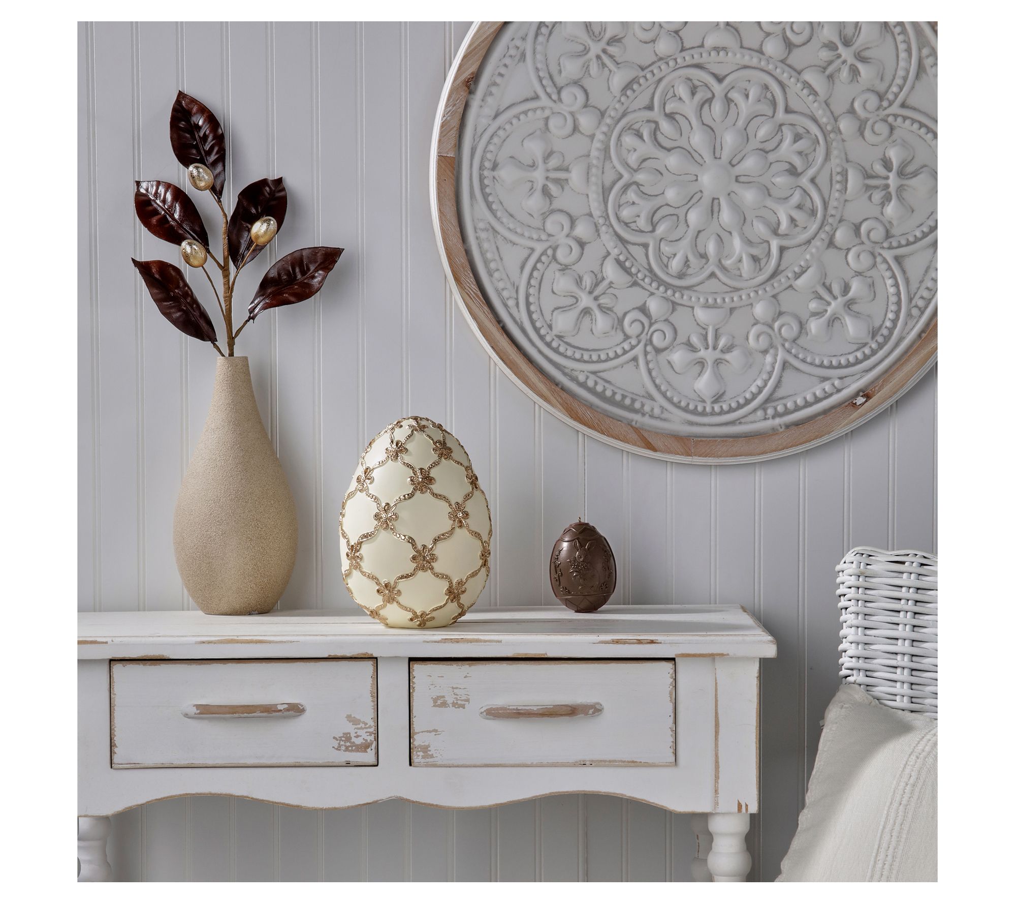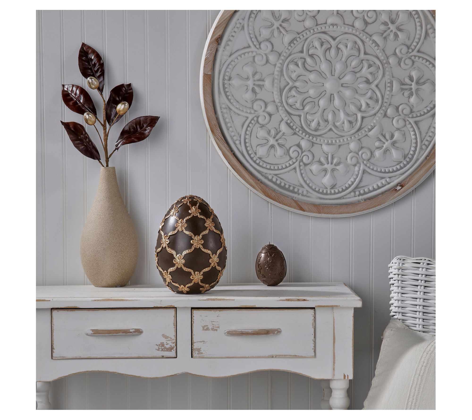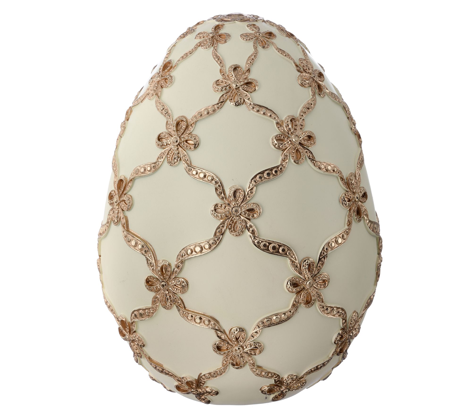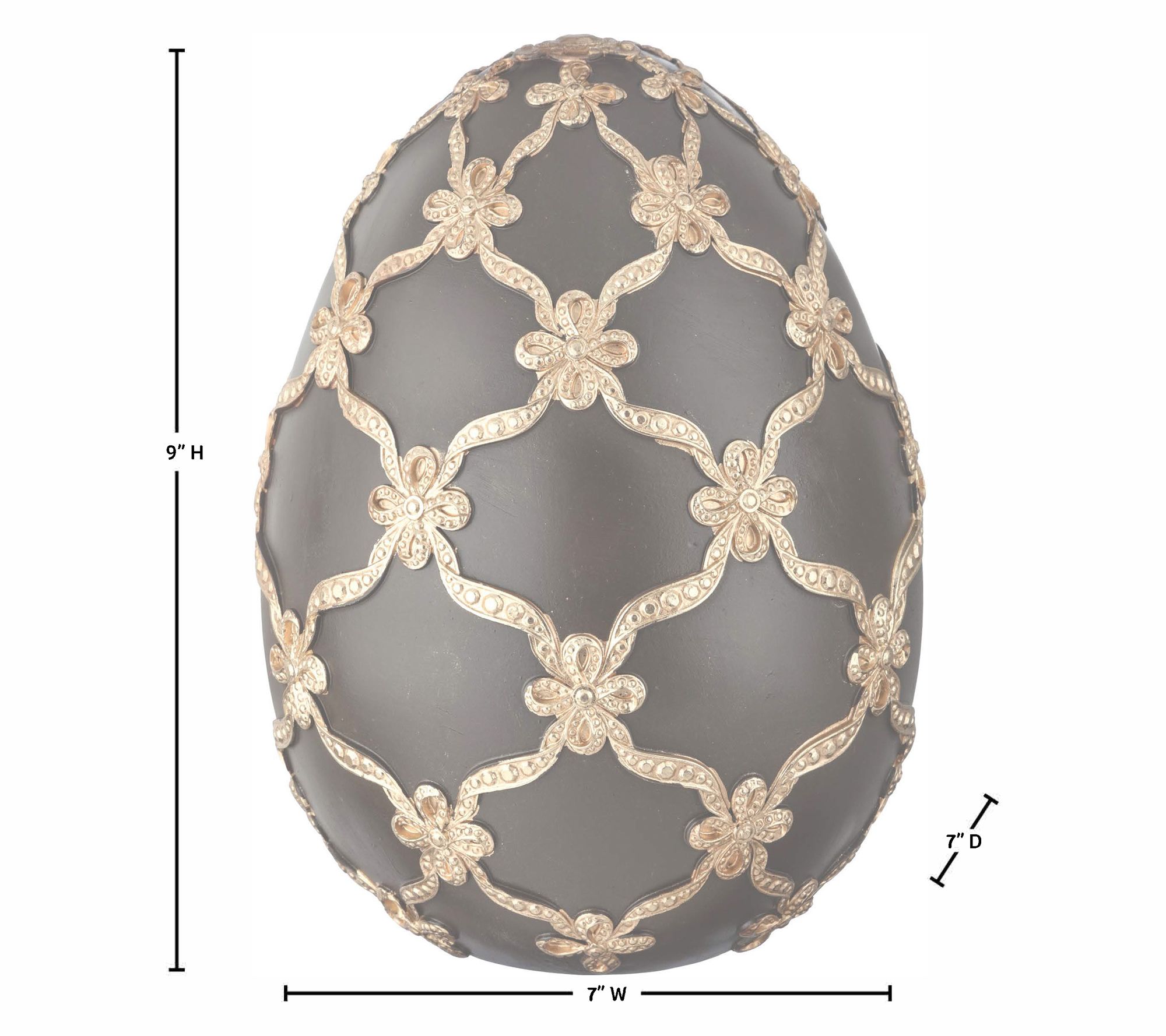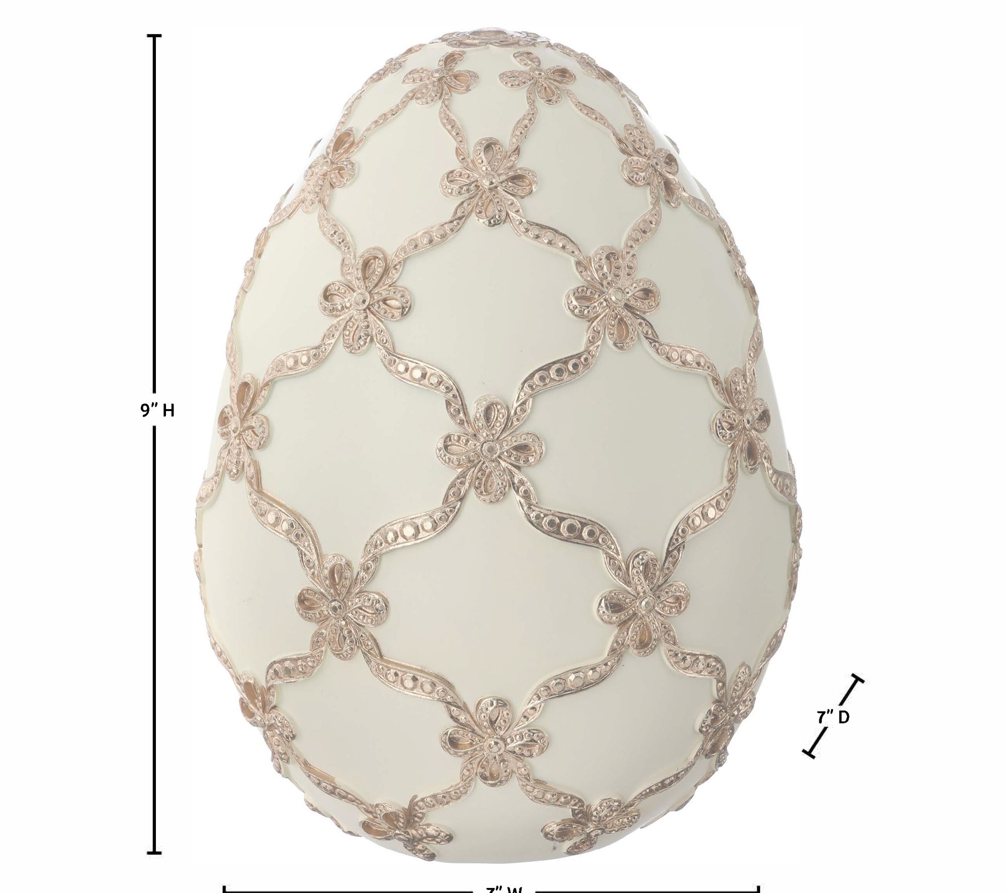 Bring a touch of elegance and sophistication to your seasonal decor with this beautiful, gilded lattice egg. The intricate design and luxurious gilded details make it a captivating centerpiece for your Easter, spring, or festive displays. Its timeless appeal adds a refined, whimsical element to mantels, tables, or shelves. From the Valerie Parr Hill Collection.