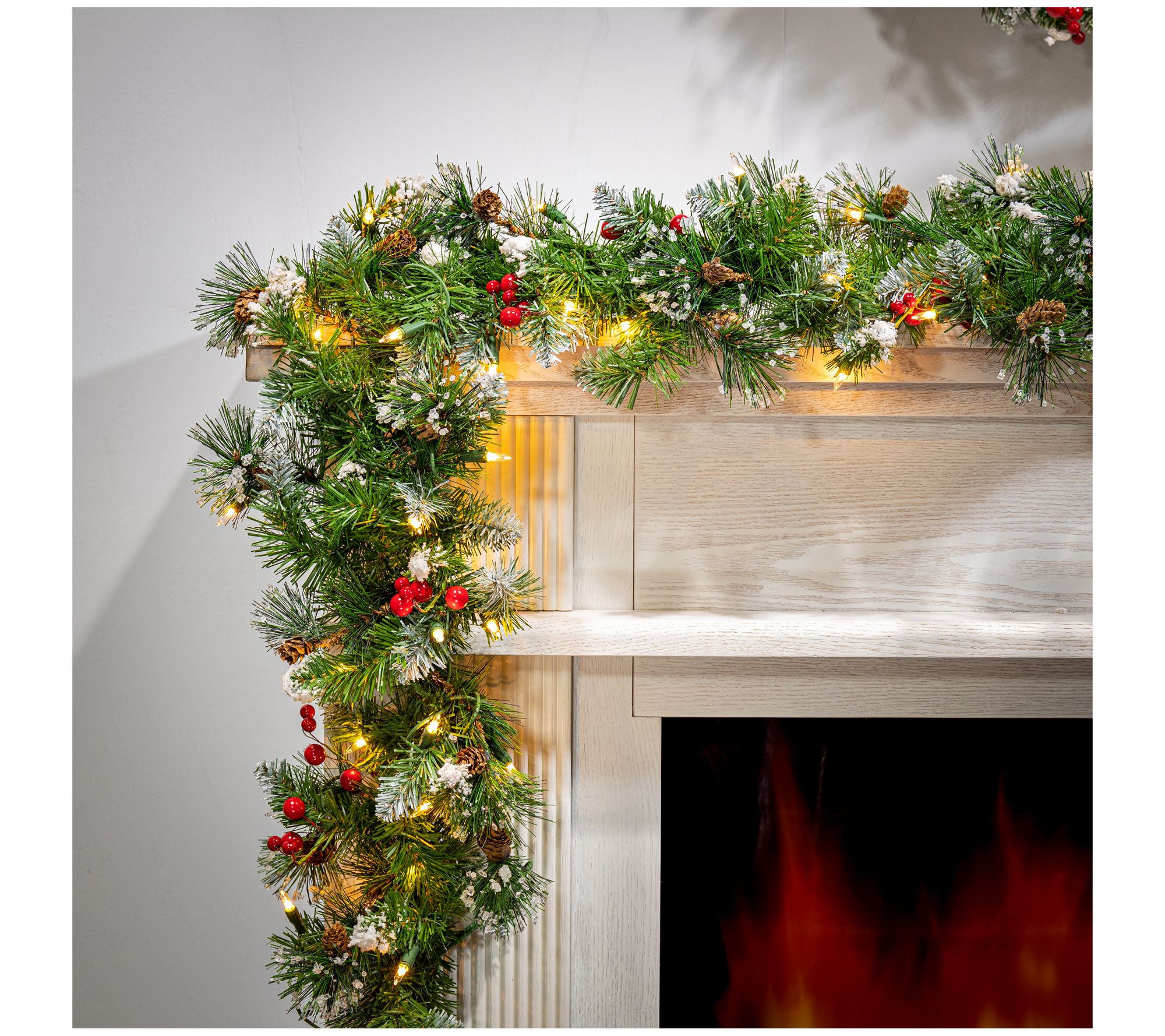 With its 200 iced branch tips, 100 clear LED lights, festive pinecones, and vibrant berries, this garland is a delightful way to add beautiful holiday spirit to your home! From Sterling.