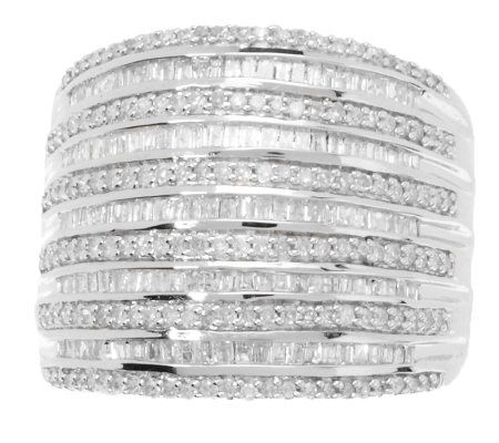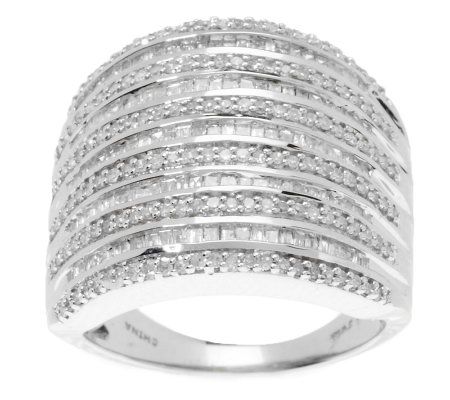 Rows, rows, rows of shine. The alternating pattern of this bold sterling silver ring is created with rows of round, bead-set diamonds and rows of baguette-shaped, channel-set diamonds. The sparkle it delivers is but a dream. From Affinity(R) Diamond Jewelry.