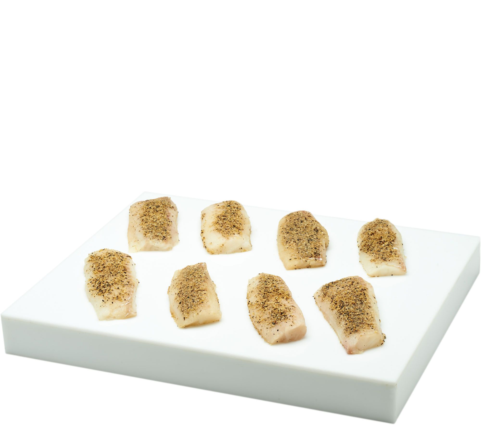 Includes eight 6-oz lemon pepper dry rubbed cod filets