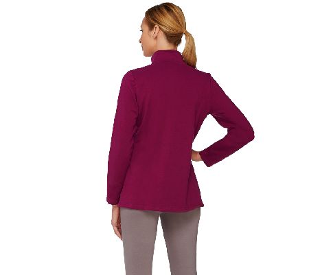 Marled in the middle. This fantastically soft French terry jacket from Denim & Co. is set apart by its marled design detail front and center. The dual-textured design also features two functional front pockets and a stand collar. Keep this pretty piece by the door for walking the dog or dashing out for lunch. From Denim & Co.(R) Fashions.