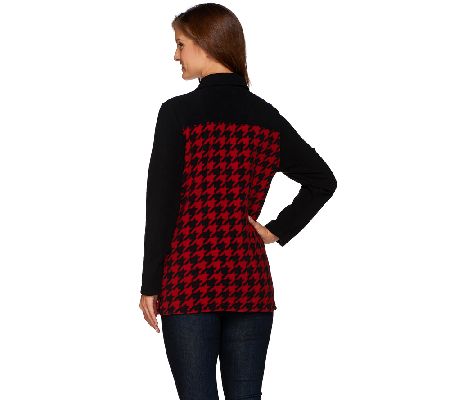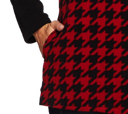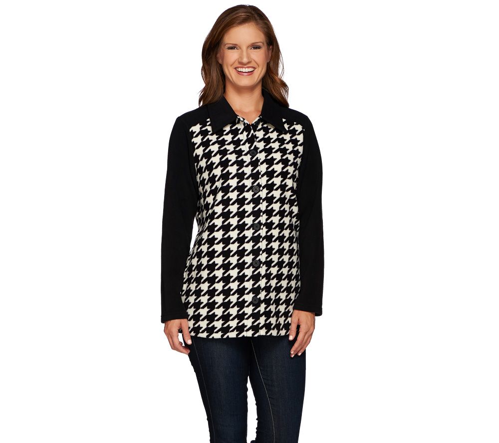"As Is" Denim & Co. Houndstooth Printed Fleece Button Front Big Shirt