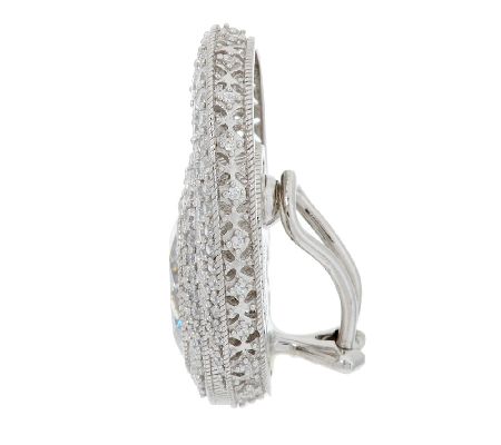 As the ovals grow, so will the eyes of your admirers. A large, oval cubic zirconia Diamonique(R) simulated diamond begins the design with a surrounding section of pave-set Diamonique simulated diamonds; surrounding that is another expanding oval section of pave-set Diamonique simulated diamonds. Each section is surrounded by a twisted-rope border, but these earrings' beauty has no limits. From Judith Ripka.