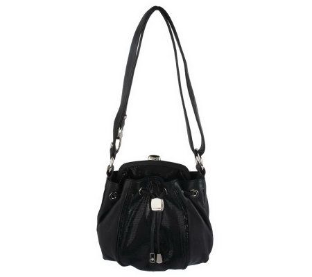 B. Makowsky Glove Leather Lizard Embossed Frame Convertib Crossbody Bag